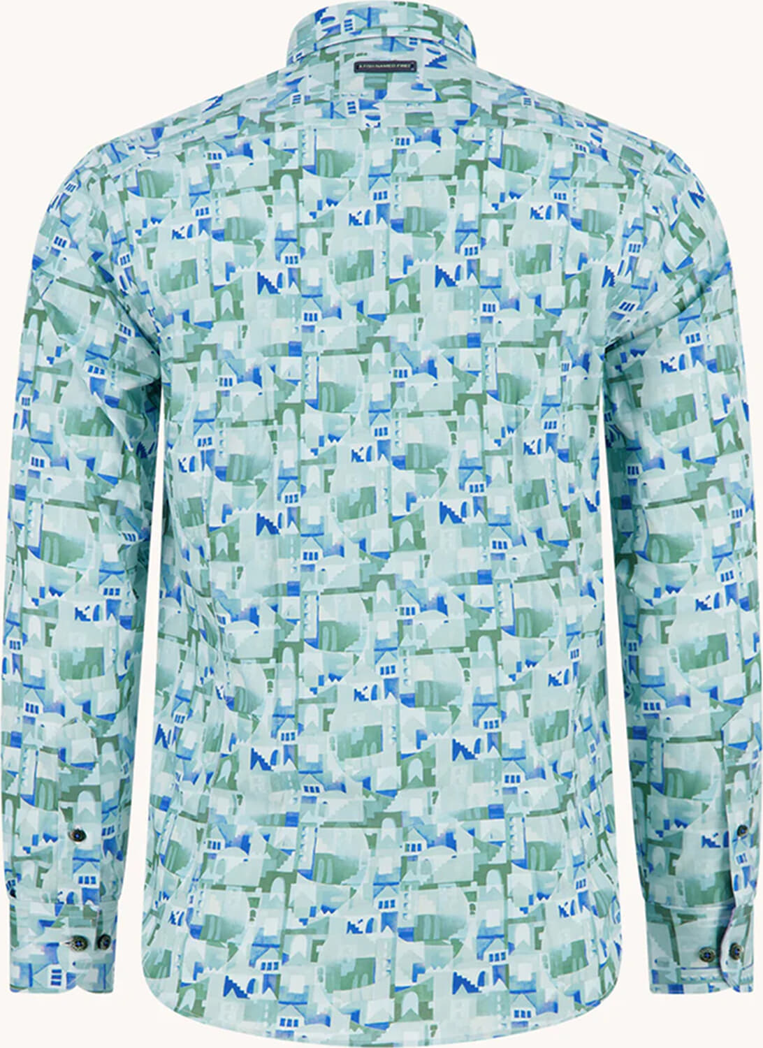Het Overhemd Abstract City van A Fish Named Fred is een trendy heren overhemd met een grafisch patroon. Het heeft een spreidkraag, lange mouwen met manchetten en een sluiting met knopen. Ideaal voor een stijlvolle, moderne look.