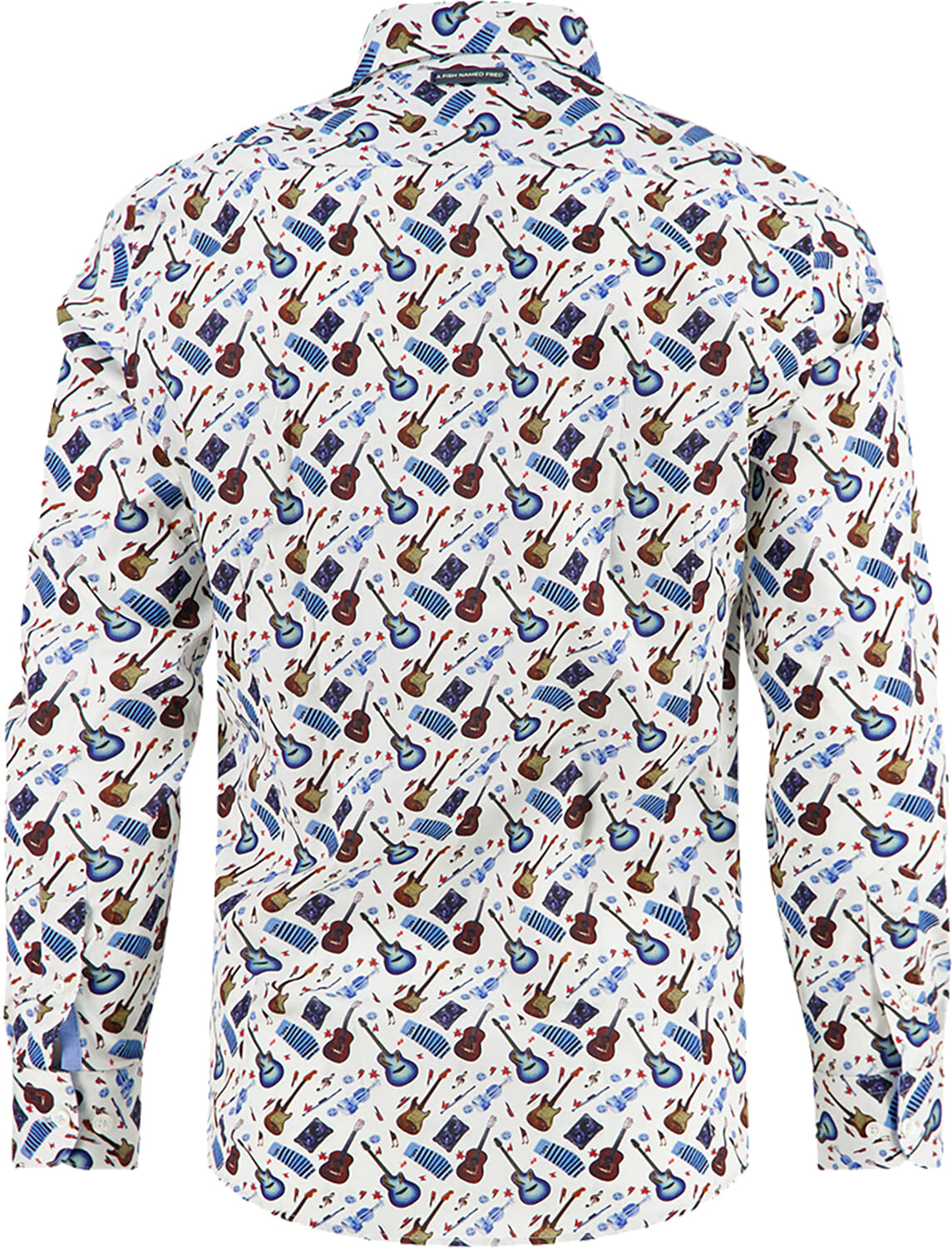 Het overhemd Various Guitars van A Fish Named Fred is een heren overhemd met een opvallend grafisch patroon van gitaren. Dit casual overhemd heeft lange mouwen en is ideaal voor een ontspannen en stijlvolle look. Perfect voor wie houdt van originele en speelse mode.