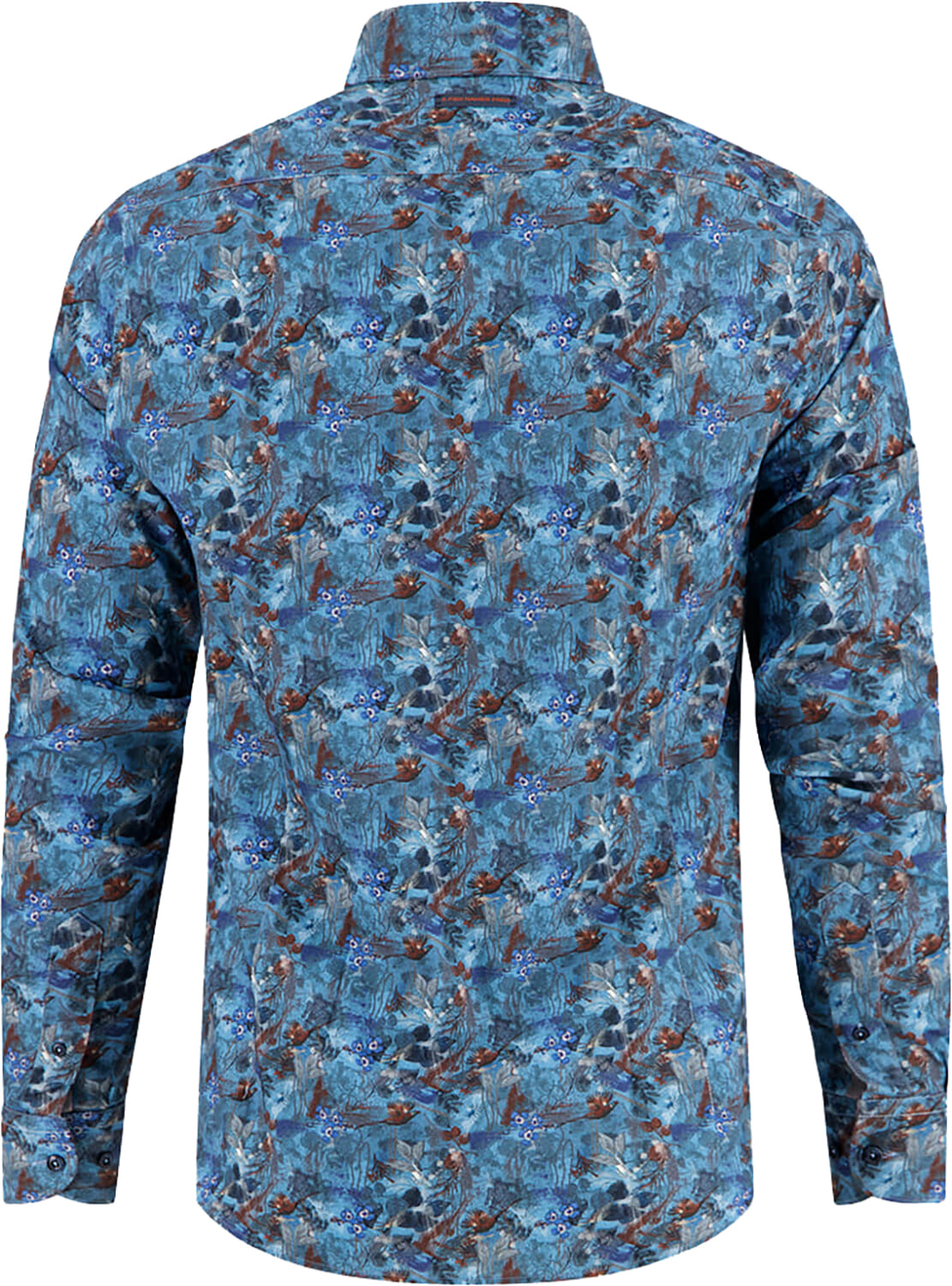 Het overhemd Watercolor Highland van A Fish Named Fred biedt een verfijnde stijl voor elke gelegenheid. Met een opstaande kraag, lange mouwen en een all-over patroon, brengt dit trendy overhemd flair en comfort samen. Ideaal voor de modebewuste man.