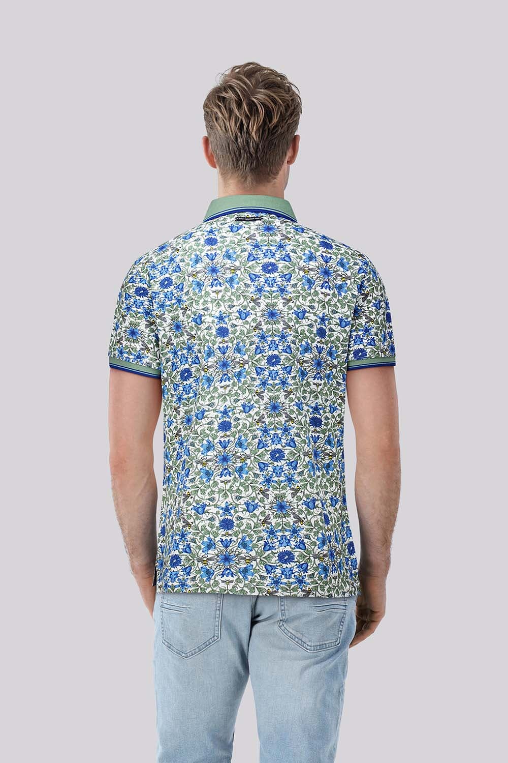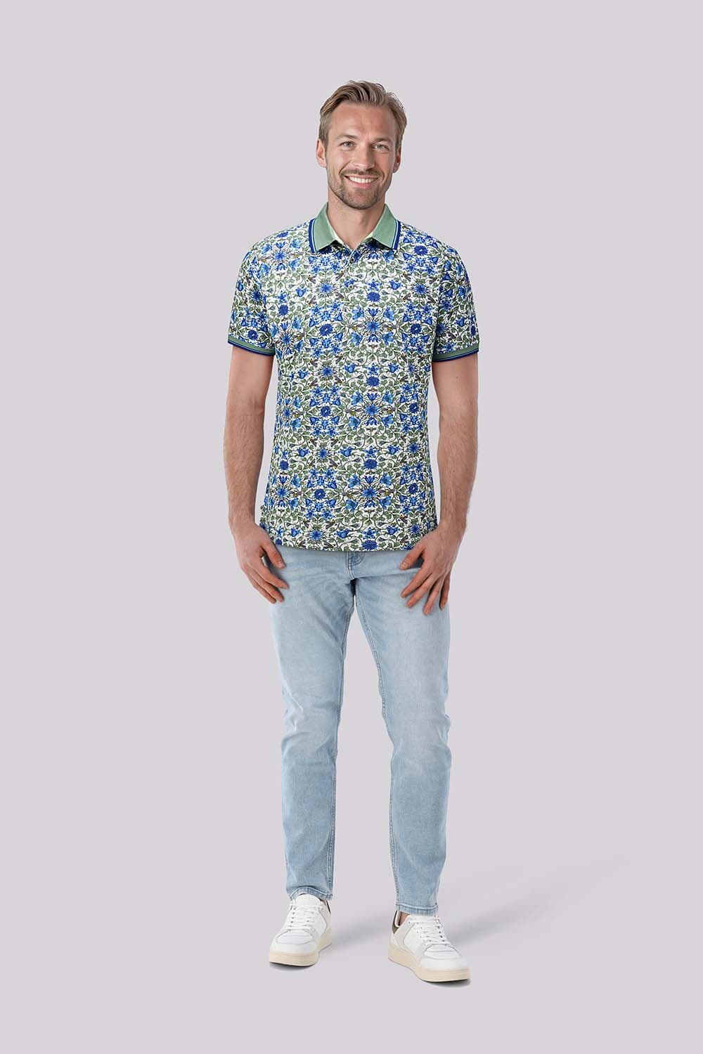 Polo Art Nouveau van A Fish Named Fred is een polo met bloemenpatroon, polokraag met spreidkraag, knoopsluiting en korte mouwen. De regular pasvorm draagt casual en sportief. Afgewerkt met contrasterende kraag- en mouwboorden. Combineer met een effen chino of jeans voor een rustige balans.