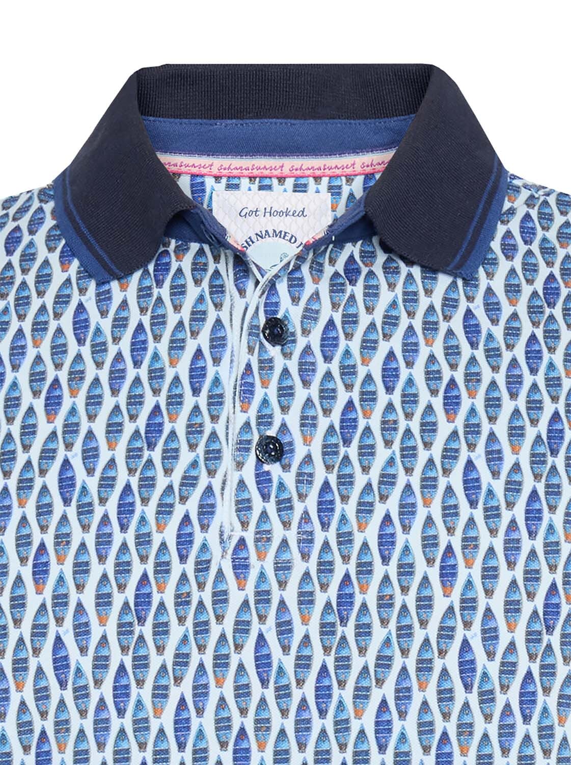 De Polo Boat van A Fish Named Fred is een casual heren polo met korte mouwen, een polokraag en een uniek grafisch patroon. Deze regular fit polo sluit met knopen en heeft manchetten zonder knopen, perfect voor elke casual gelegenheid.