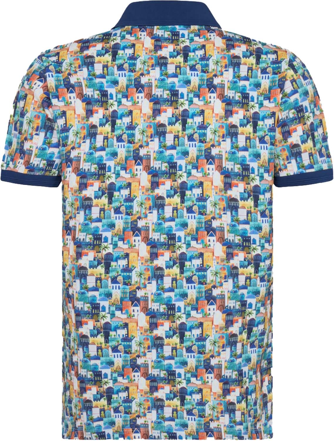 Polo Town van A Fish Named Fred is een heren polo met een levendig all-over patroon. Deze casual polo heeft een opstaande kraag en een polokraag, korte mouwen en een regular fit. Ideaal voor elke gelegenheid, biedt het een stijlvolle en comfortabele uitstraling.
