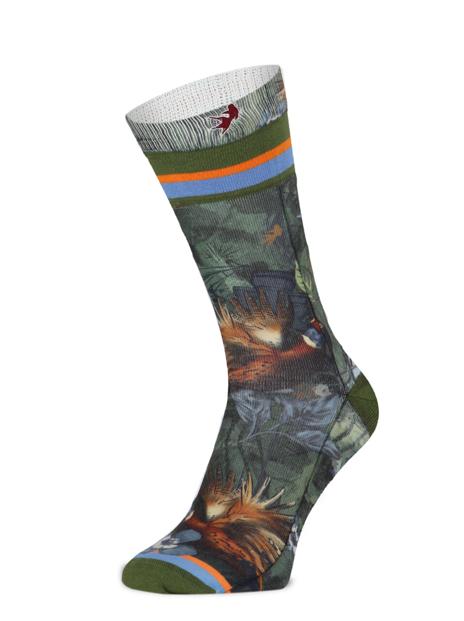 Sokken Watercolor Highland van A Fish Named Fred brengen een bohemian stijl met een levendige dierenprint. Deze heren sokken zijn perfect voor iedereen die houdt van unieke patronen en comfortabele pasvormen. Voeg een vleugje speelsheid toe aan elke outfit met deze opvallende sokken.