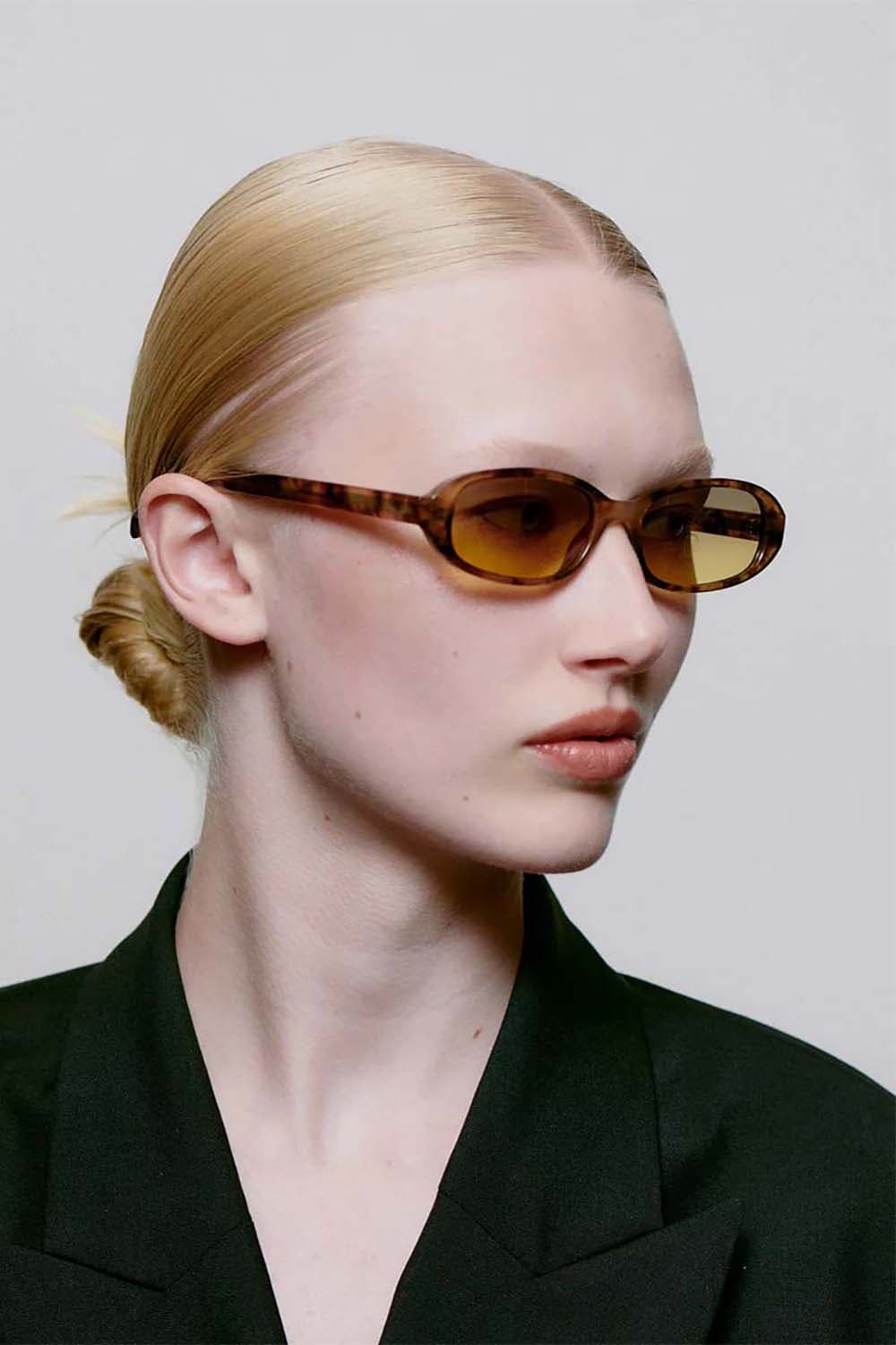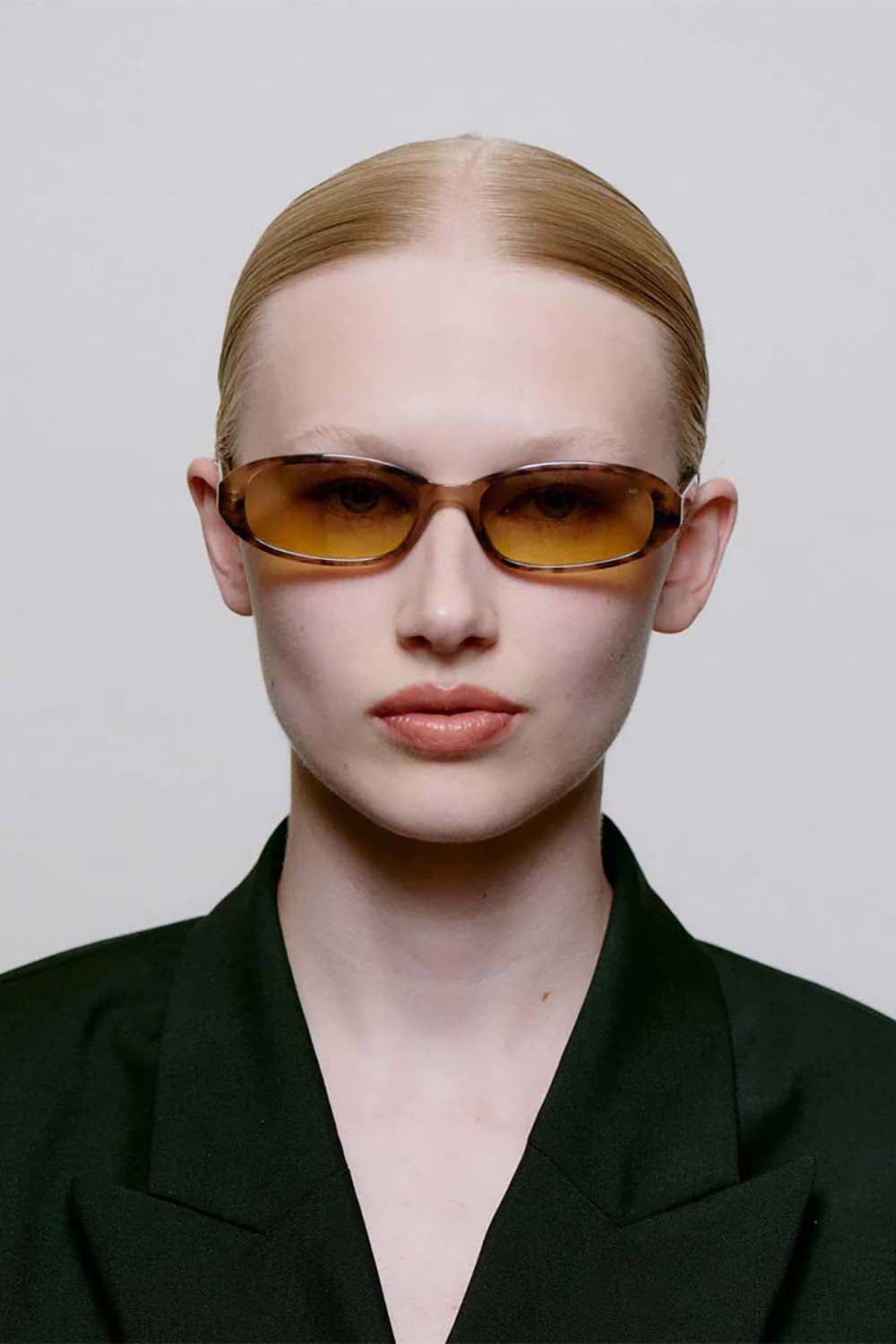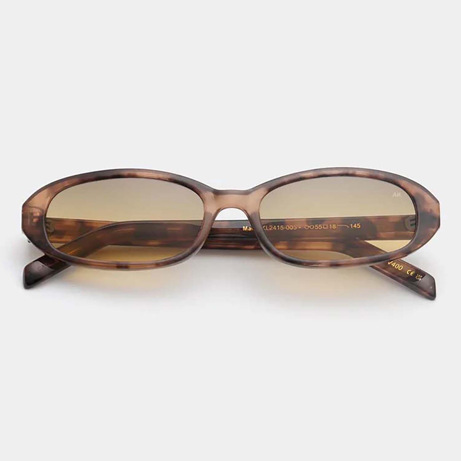 De macy dames zonnebril van A Kjaerbede aps combineert een verfijnde stijl met bescheiden elegantie. Het ontwerp met bruine glazen en een schildpadmotief frame biedt een tijdloze uitstraling, perfect voor elke gelegenheid. Deze zonnebril is zowel modieus als functioneel, met UV-bescherming.