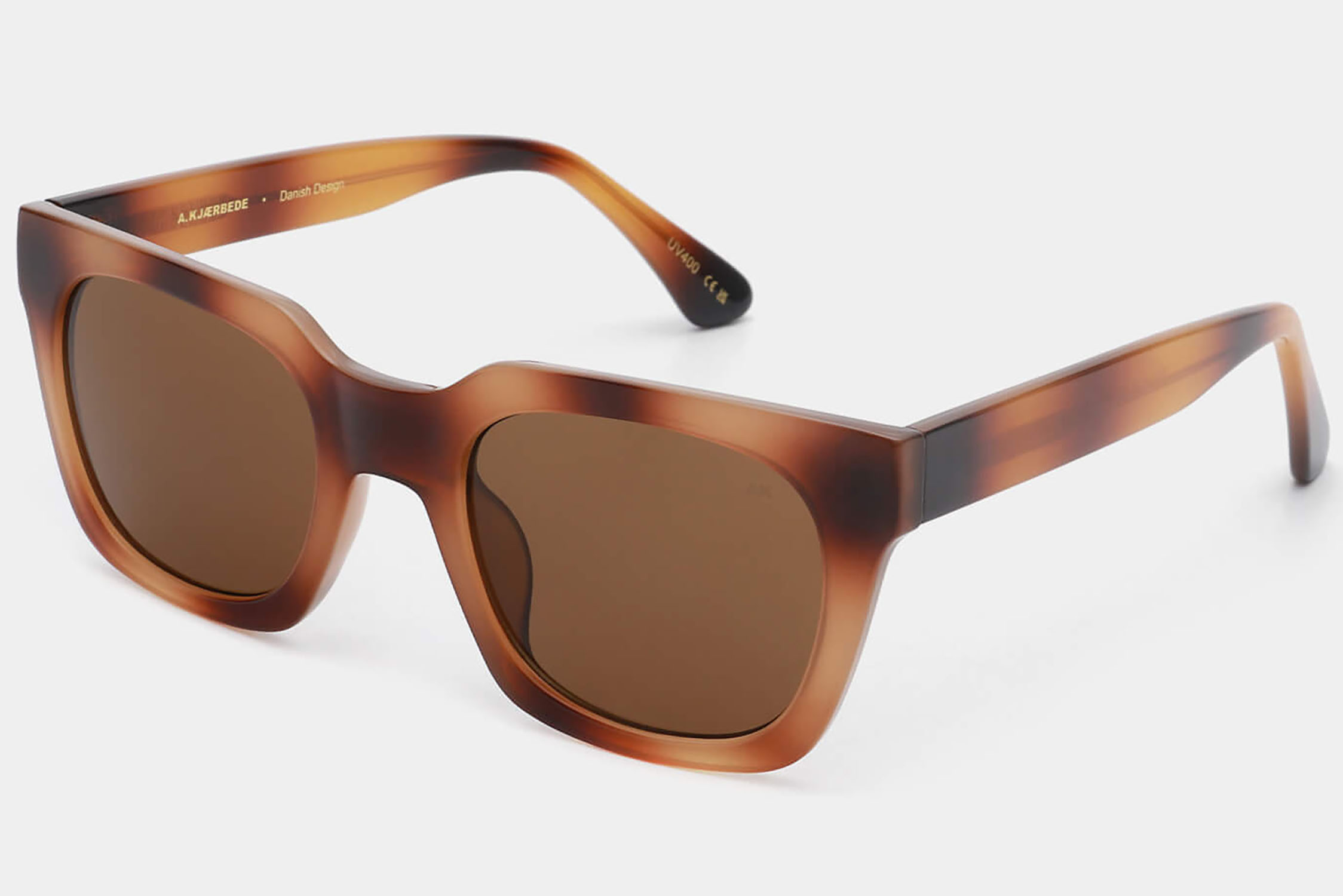 De Nancy zonnebril van A Kjaerbede aps combineert een verfijnde, vrouwelijke stijl met een unieke schildpadprint. Deze stijlvolle zonnebrillen bieden uitstekende UV-bescherming en hebben een moderne, vierkante vorm die elk gezicht flatteert. Perfect voor zowel casual als formele gelegenheden.