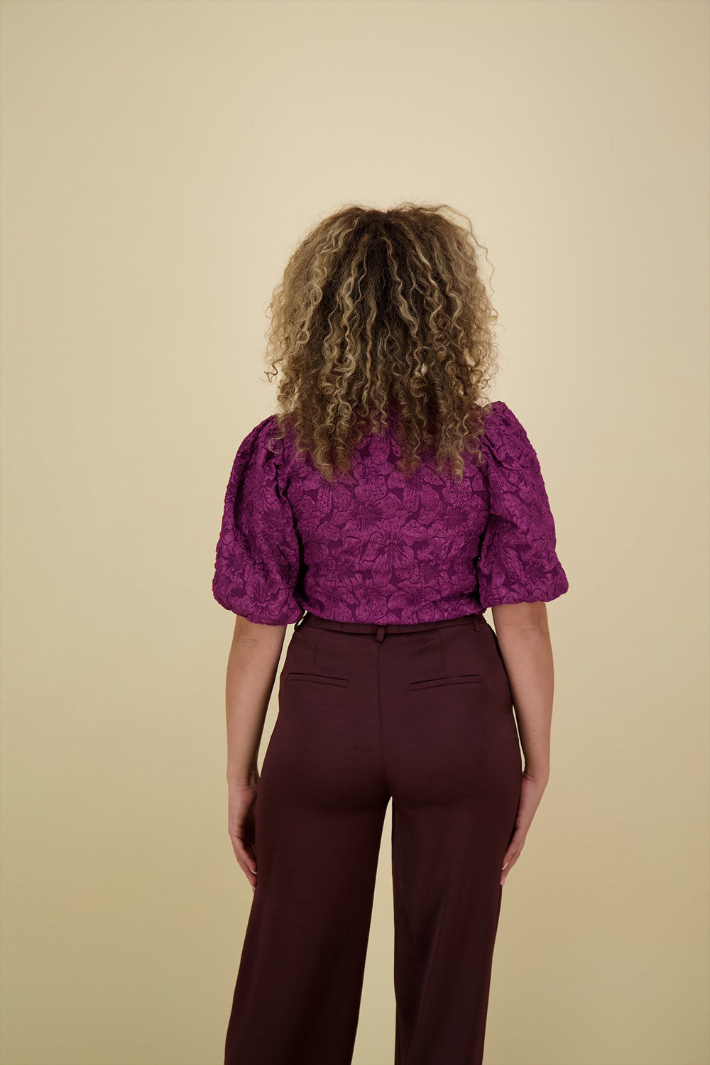 De Blouse Cary Jacuard van Aaiko is een stijlvolle dames blouse met een V-hals en lange mouwen, perfect voor het najaar en de winter van 2024. Het bloemmotief voegt een vleugje vrouwelijkheid toe, terwijl de rijke textuur zorgt voor een verfijnde uitstraling.