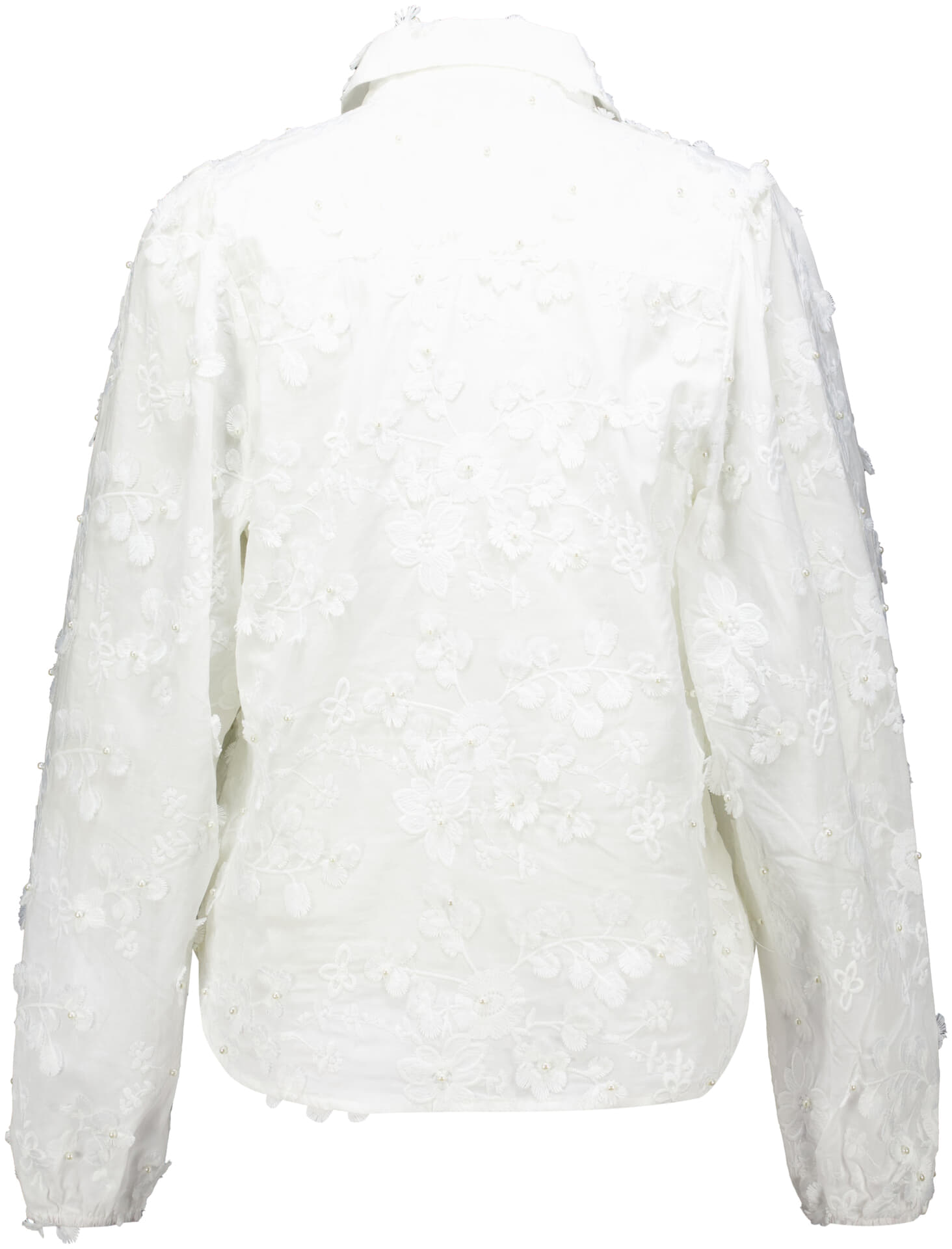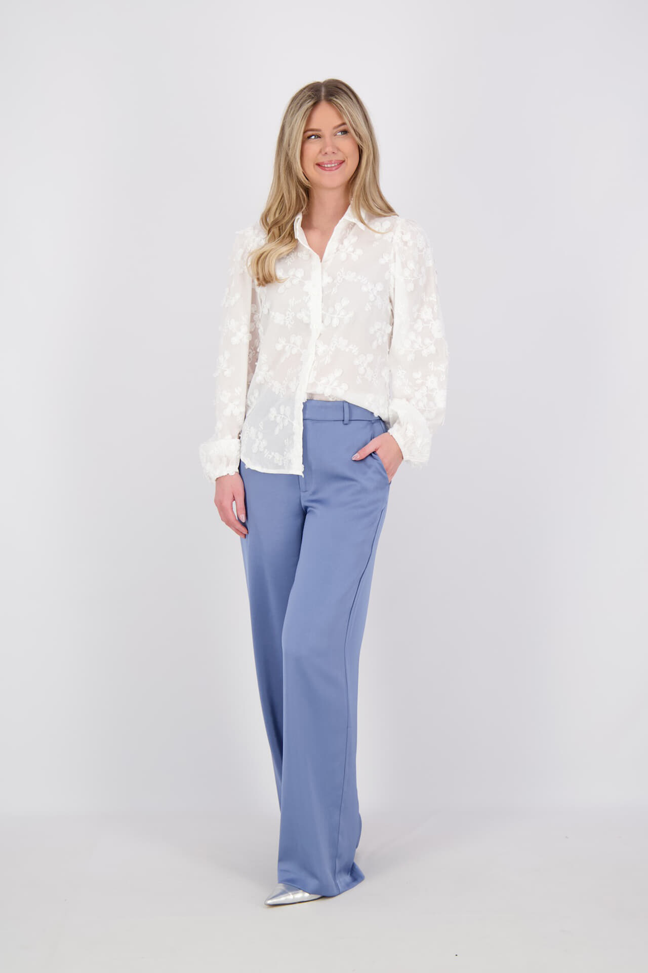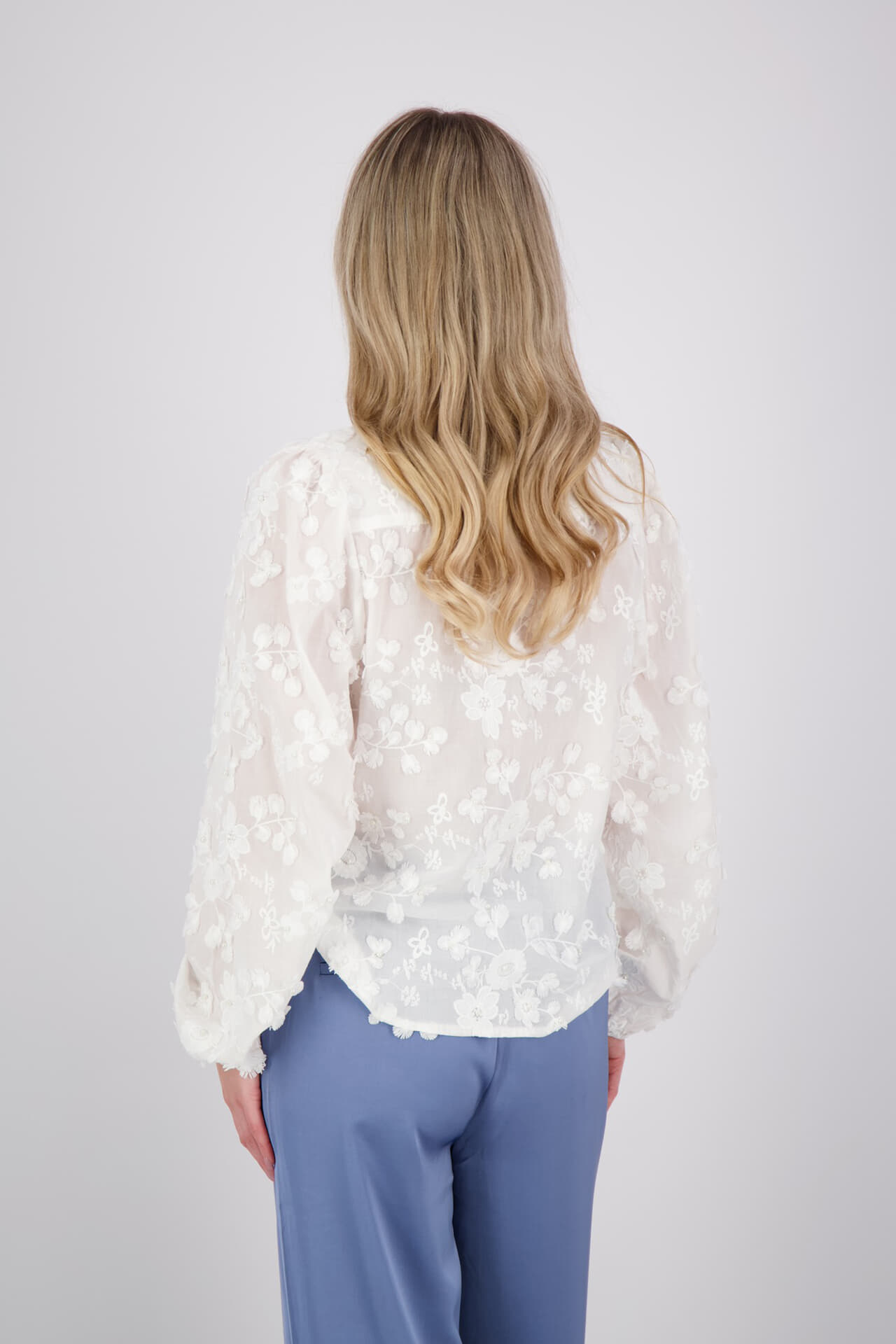 Blouse Lien blouse van Aaiko heeft een regular pasvorm, spreidkraag en split hals met knoopsluiting. De lange mouwen eindigen in een manchet met elastiek. De stof toont een bloemenpatroon met subtiele 3D-structuur. Draag netjes op een pantalon of rok.