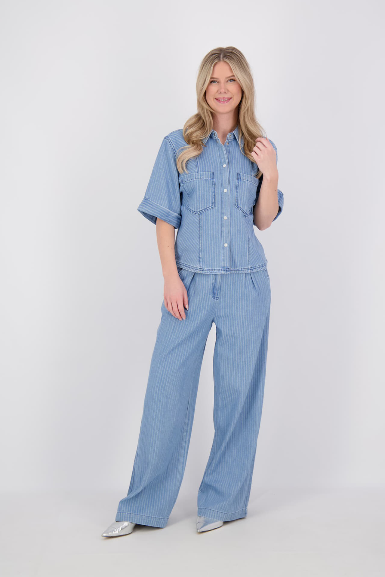 Blouse Serene Stripe van Aaiko is een blouse met korte mouw, getailleerde pasvorm en streeppatroon. De spreidkraag, knoopsluiting en halslijn met knopen geven een nette afwerking, terwijl de voorzakken en omgeslagen mouwuiteinden praktisch zijn. Combineer met een jeans of chino voor casual draaggemak.