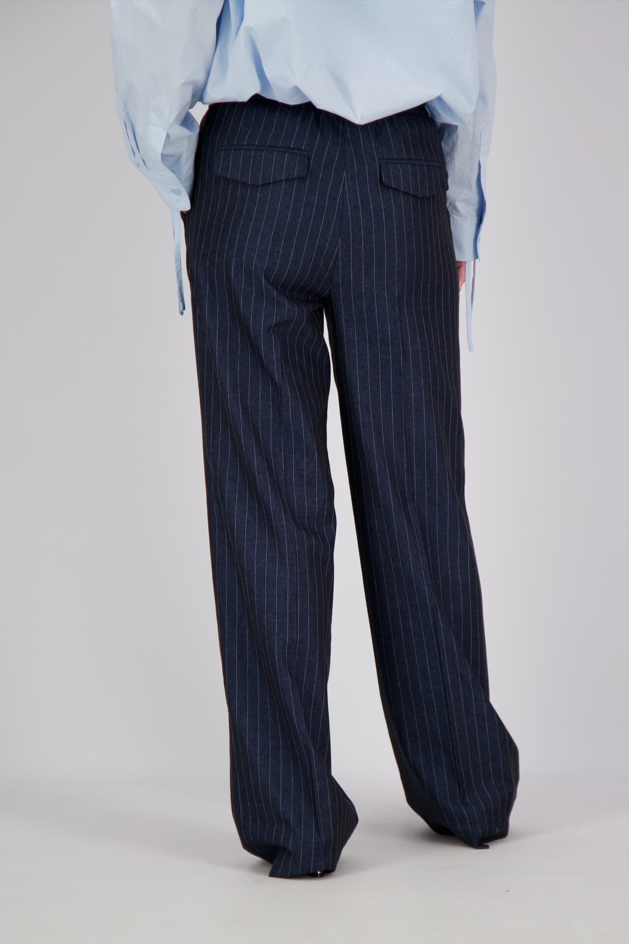 De Esila Broek is een losvallend model met rechte pijpen en een sportieve elastische tailleband met drawstring. Het krijtstreepdesign geeft de broek een meer formele uitstraling, maar de pasvorm maakt ’m juist casual en comfortabel.