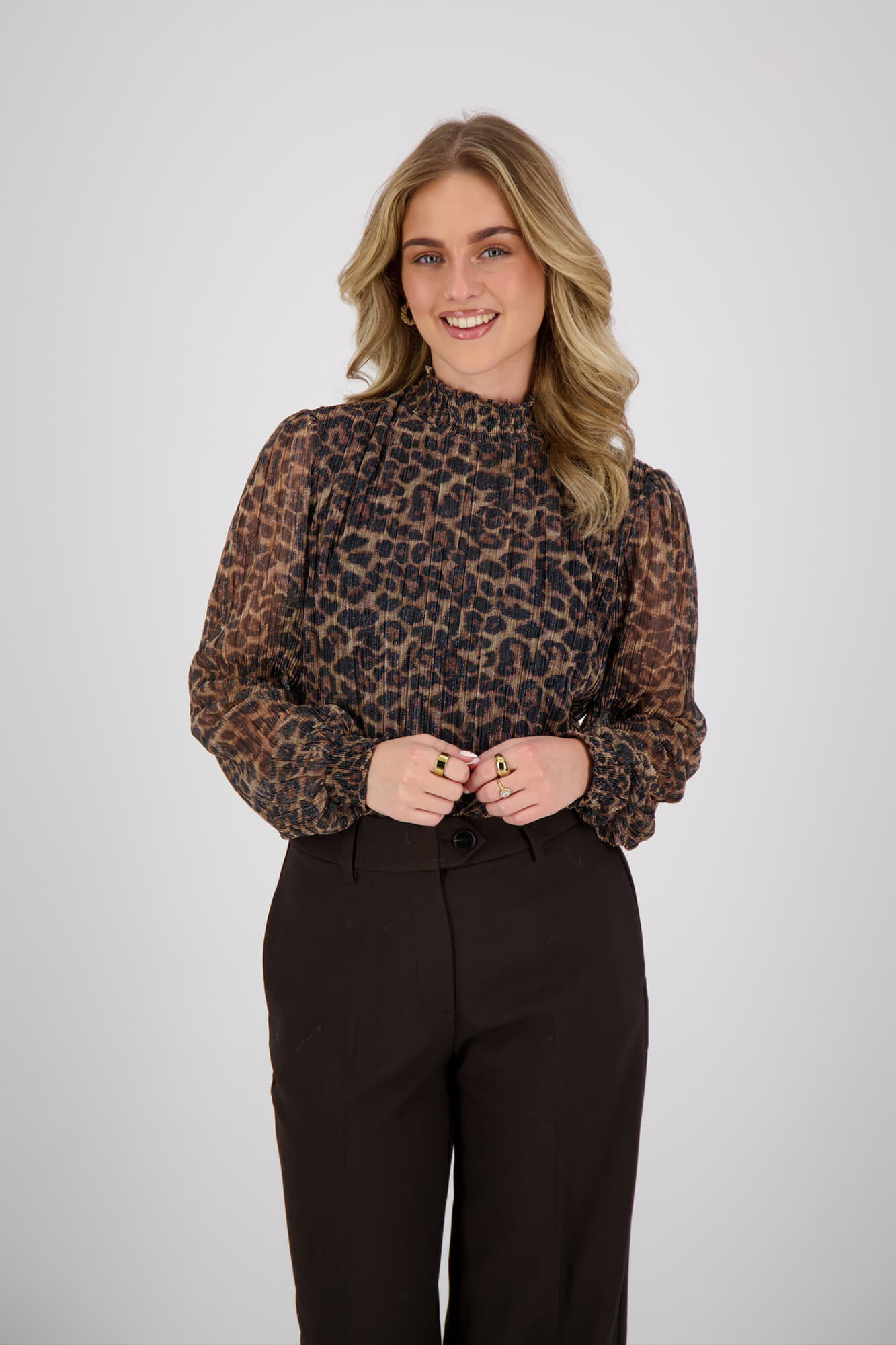 De Longsleeve Tory Animal van Aaiko is een trendy longsleeve met een panterprint, opstaande kraag en lange mouwen met manchetten. De losse pasvorm zorgt voor comfort, terwijl de vrouwelijke stijl perfect is voor elke trendy gelegenheid.