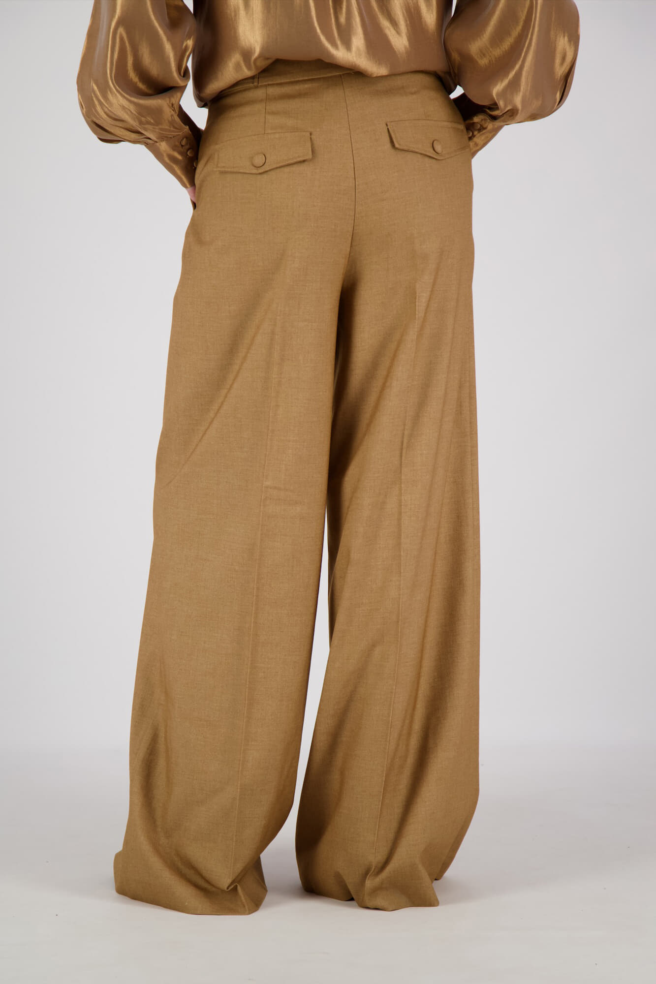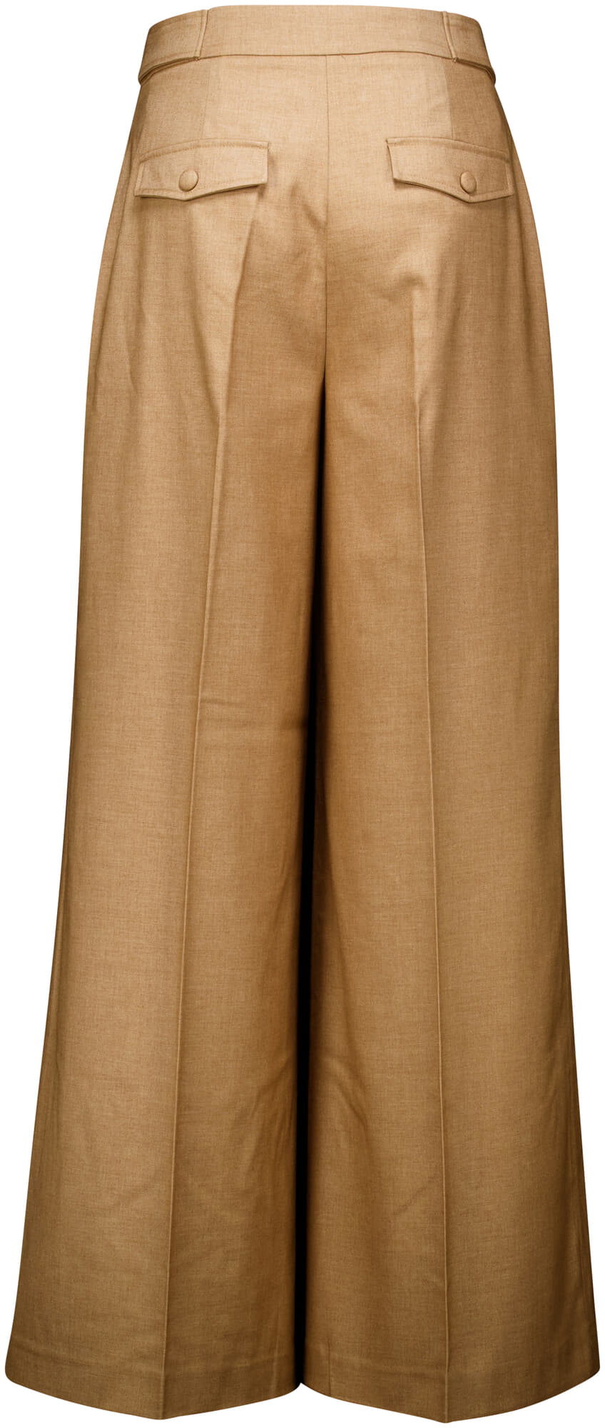 De Pantalon Nore Pockets Ten van Aaiko combineert stijl en comfort. Deze elegante pantalon heeft een hoge taille en wijde pijpen, met praktische achterzakken en een knoop- en ritssluiting. Perfect voor een nette gelegenheid, deze effen broek straalt verfijning uit.