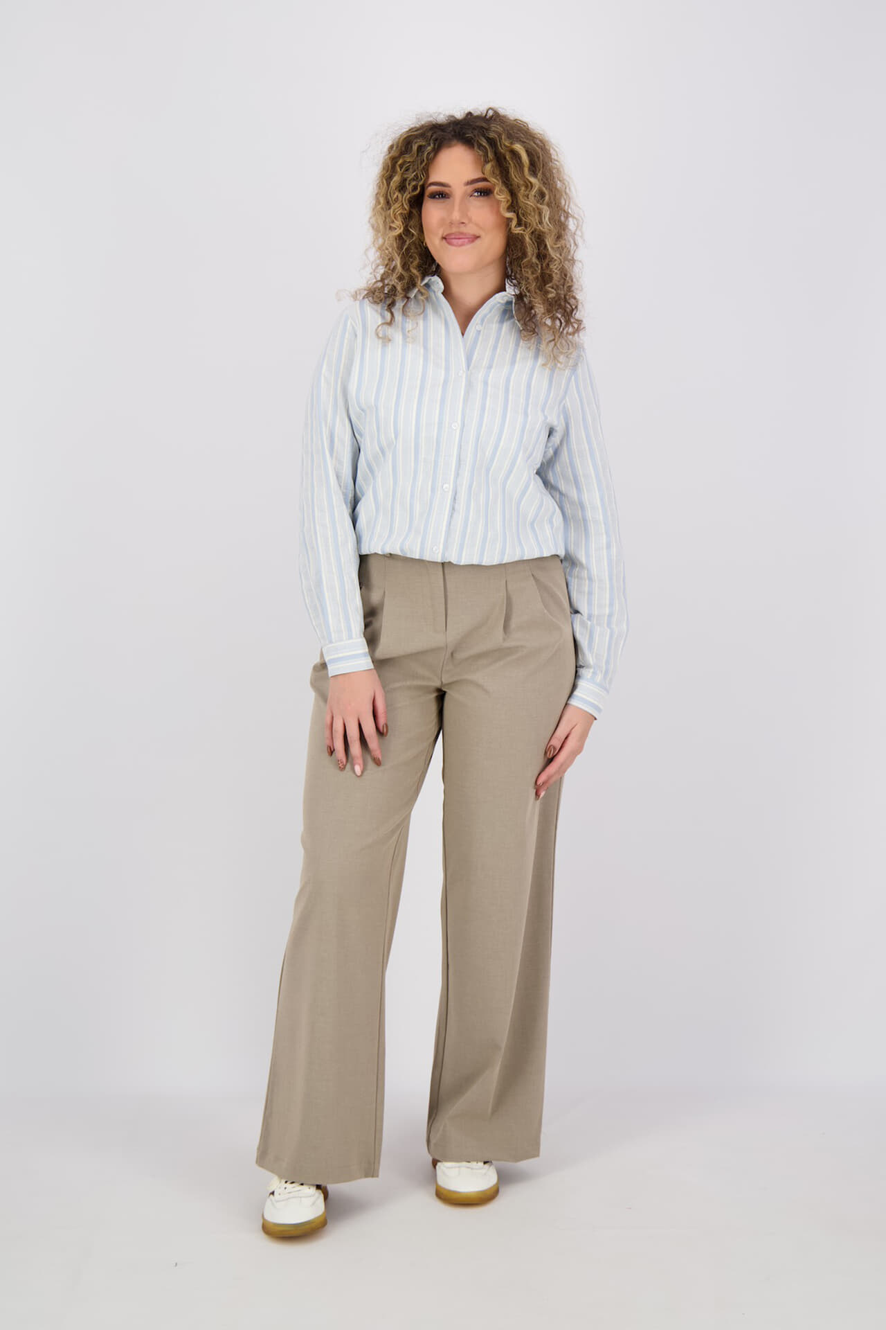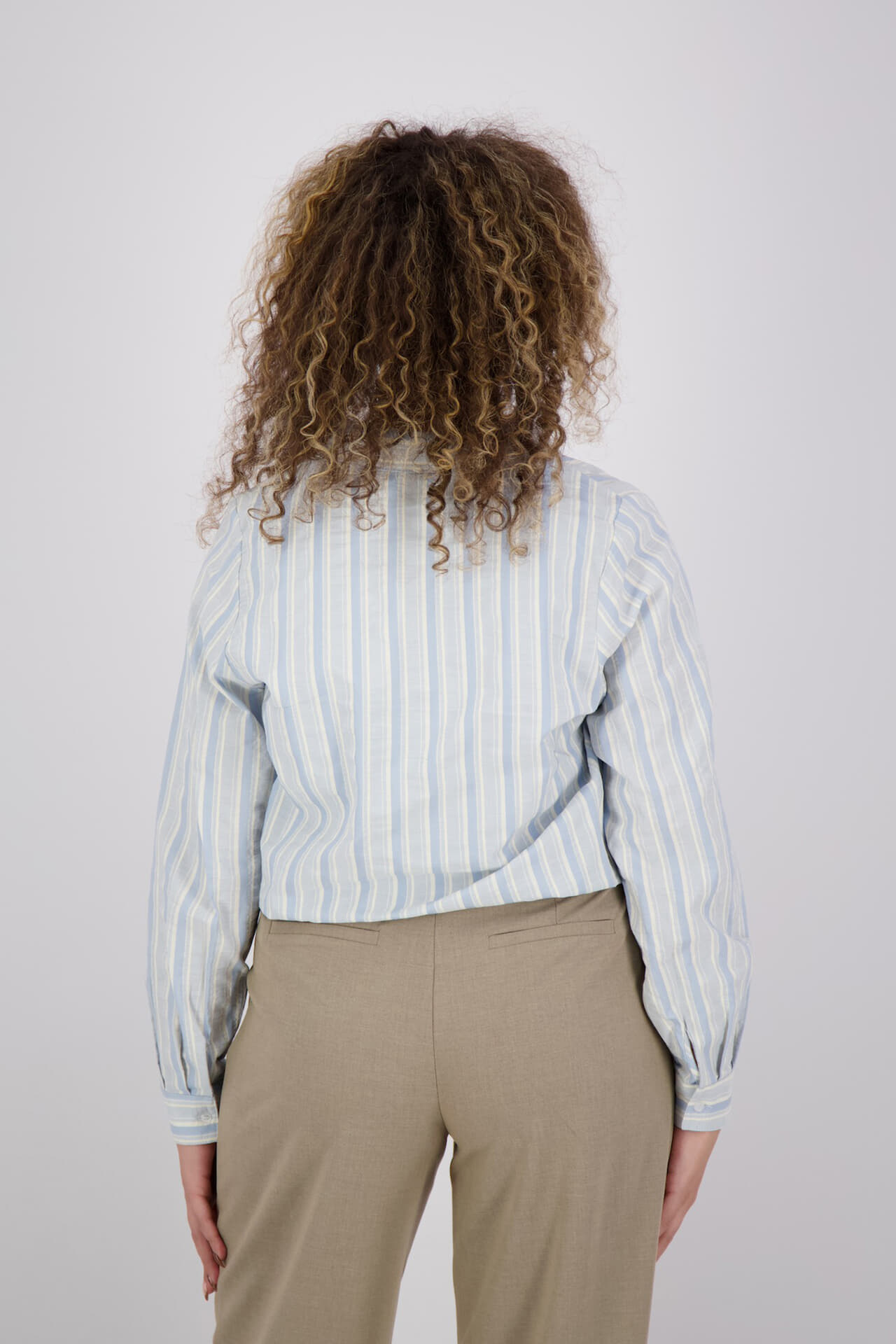 Blouse Doris van Aimée the label biedt een casual uitstraling met een spreidkraag en knoopsluiting. De lange mouwen met manchetten en het streeppatroon maken deze dames blouse ideaal voor elke gelegenheid. De regular fit zorgt voor comfort en stijl, perfect voor een ontspannen dag.