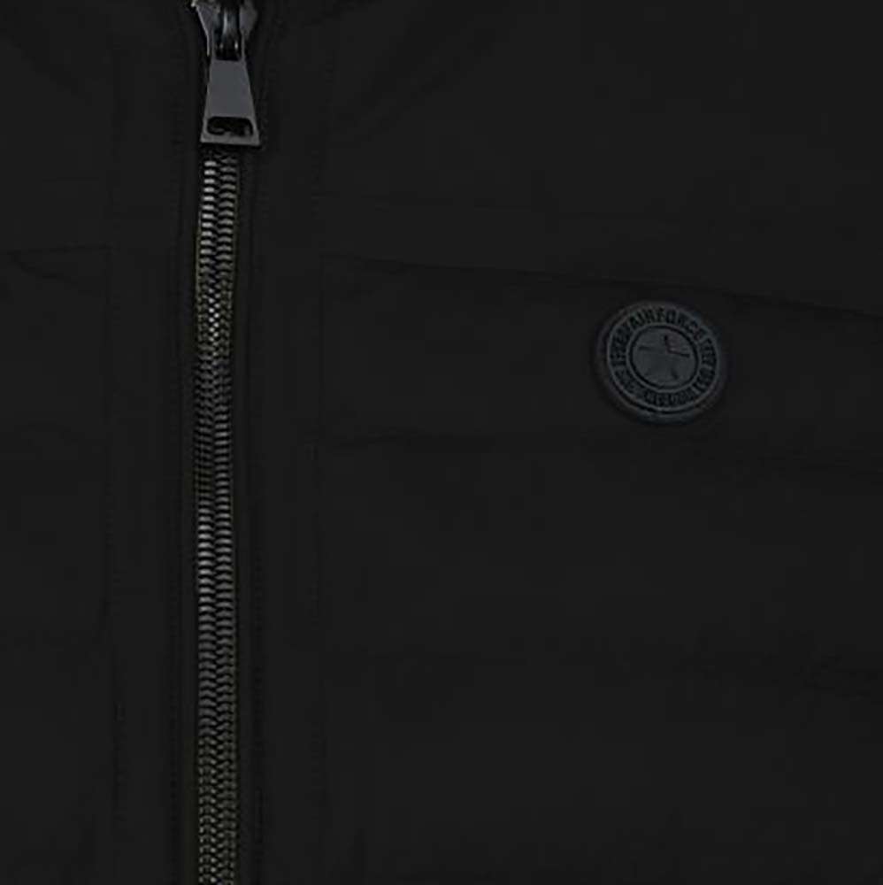 De Padded Bodywarmer is voorzien van ritssluiting en heeft bij de kraag 2 drukknopen. De bodywarmer heeft een airforce logo badge op de linker borst en twee zakken aan de zijkant die af te sluiten zijn met een rits.