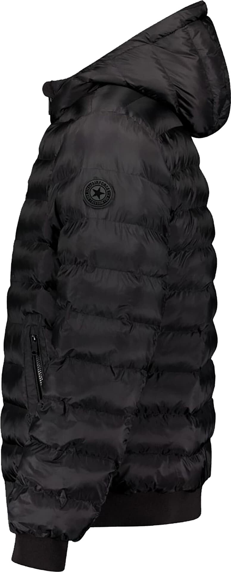 De Hooded Reversible jacket is de ideale winterjas je kan deze op twee manieren dragen. . De jas is voorzien van een vaste capuchon en heeft aan beide zijden drie zakken met ritssluiting. Eén zijde is uitgevoerd in een matte stof, terwijl de andere zijde een subtiele glans heeft. Op beide kanten bevindt zich op de linkermouw de kenmerkende Air-Force patch. De Hooded Reversible Jacket is waterafstotend en winddicht.