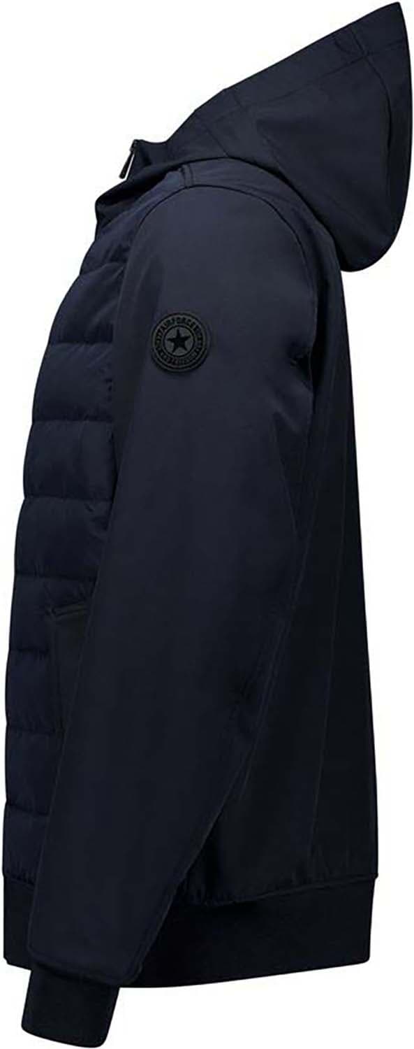 De River Softshell Jacket is een functionele jas met een clean en sportief design. De jas is winddicht en waterafstotend en voorzien van een vaste, verstelbare capuchon. Aan de binnenkant bevindt zich een binnenzak met ritssluiting en de jas sluit aan de voorzijde met een rits. De voorkant is uitgevoerd in gewatteerd materiaal, terwijl de mouwen en rug zijn gemaakt van softshell stof. De zakken zijn afgewerkt met een klepje, waarbij de rechterzak is voorzien van een Air-Force wording logo. Op de linkermouw zit een Air-Force logo badge. De mouwen en onderkant van de jas hebben een elastische boord voor een comfortabele pasvorm.