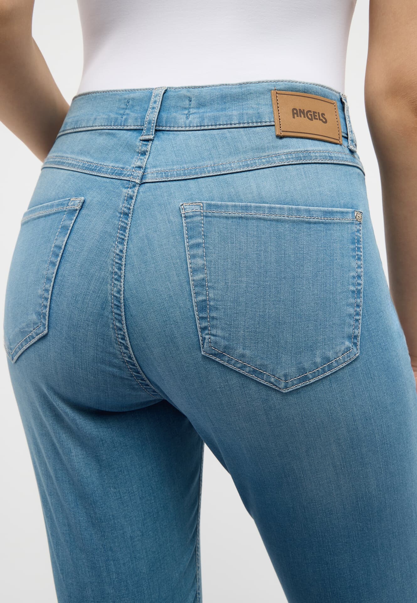Jeans Leni van Angels biedt een casual stijl met een normale taillehoogte en achterzakken. De broek heeft een knoop- en ritssluiting en is ontworpen als flared jeans met een regular pasvorm. De effen kleur maakt het een veelzijdige aanvulling op elke kledingkast.