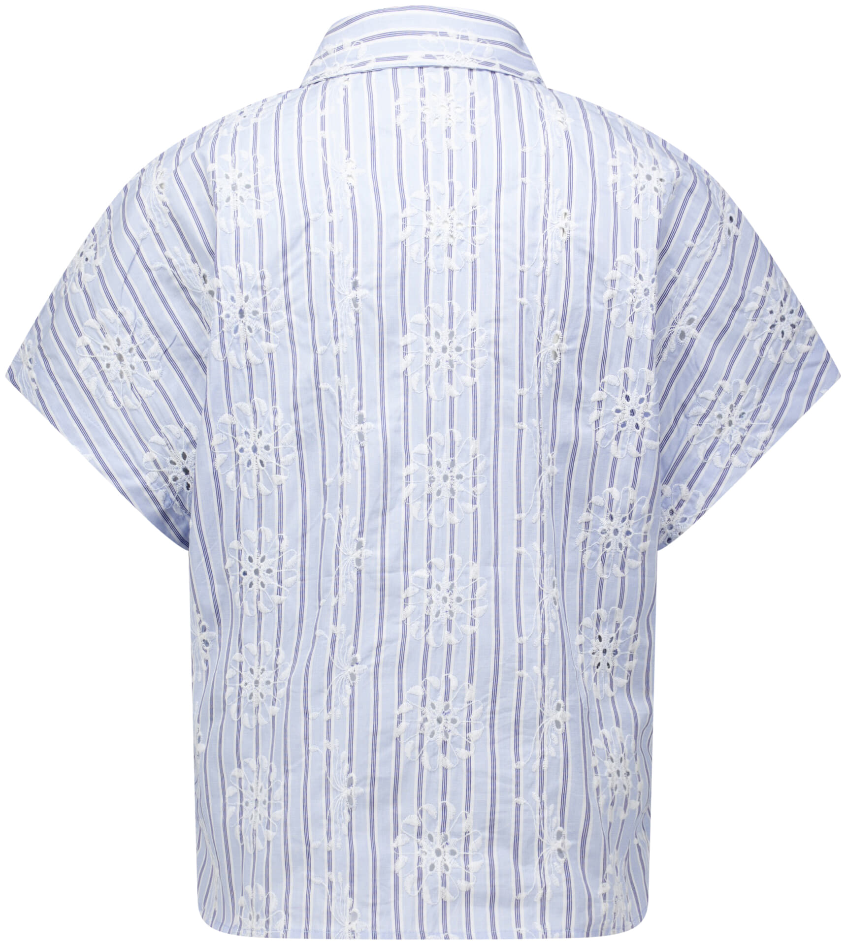 Blouse Lexy van Anna Blue heeft een casual uitstraling met spreidkraag, overhemdkraag en korte mouwen. De regular pasvorm valt recht en comfortabel. Het streep- en bloemenpatroon geeft structuur. Draag los op een jeans of half ingestopt voor een nette, relaxte lijn.