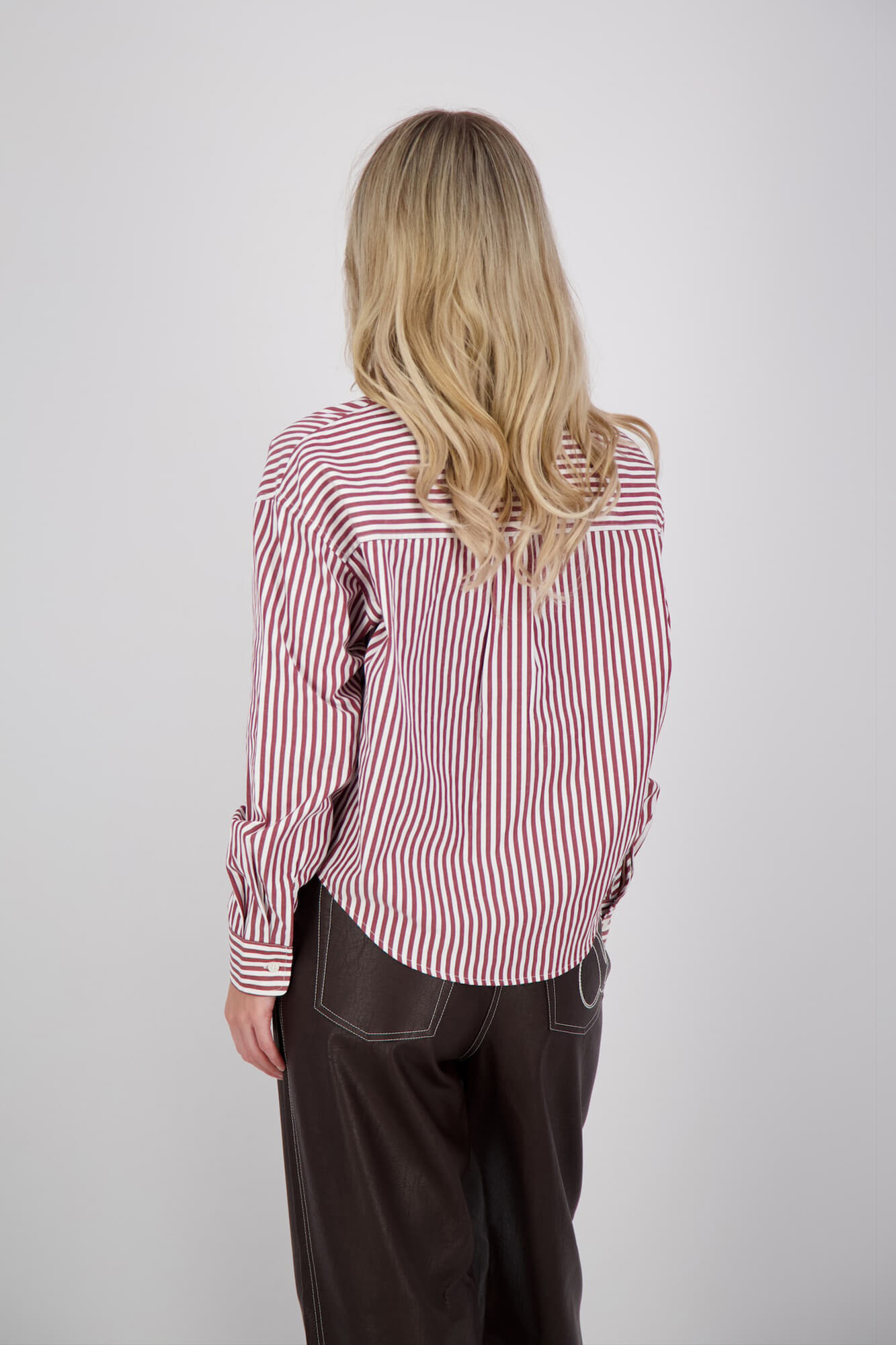 Blouse Sam van Anna Blue is een stijlvolle business blouse met een klassiek streeppatroon. De button-down kraag en manchetten met knopen geven het een nette uitstraling. Perfect voor formele gelegenheden en biedt comfort en stijl dankzij de lange mouwen en de hoogwaardige afwerking.