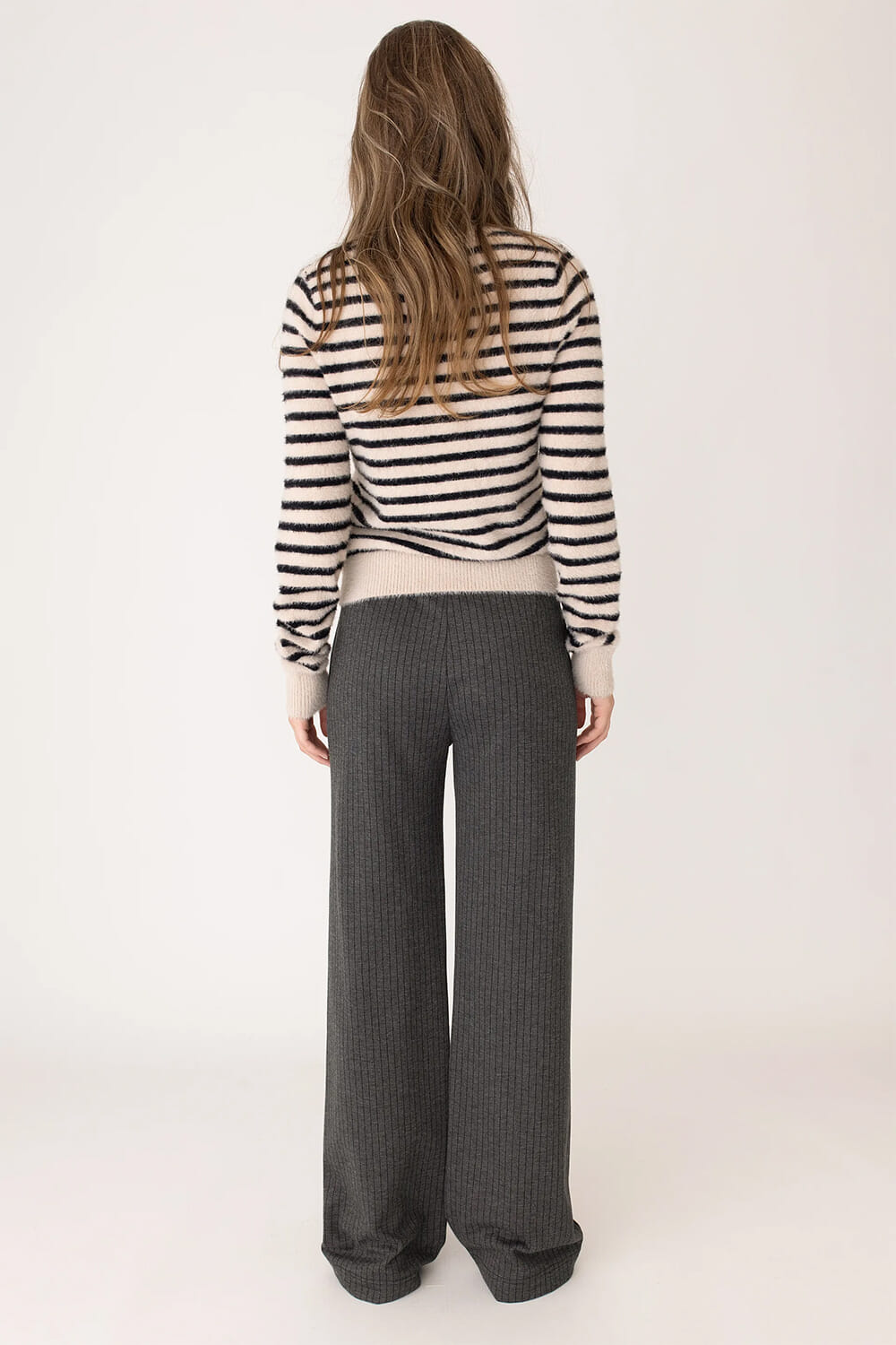 De Hobeyly dames lange broek van Anna Blue combineert een casual, verfijnde stijl met een elastische taille en wijde pijpen. Het streeppatroon zorgt voor een elegante uitstraling. Ideaal voor wie op zoek is naar comfort en stijl in één kledingstuk.
