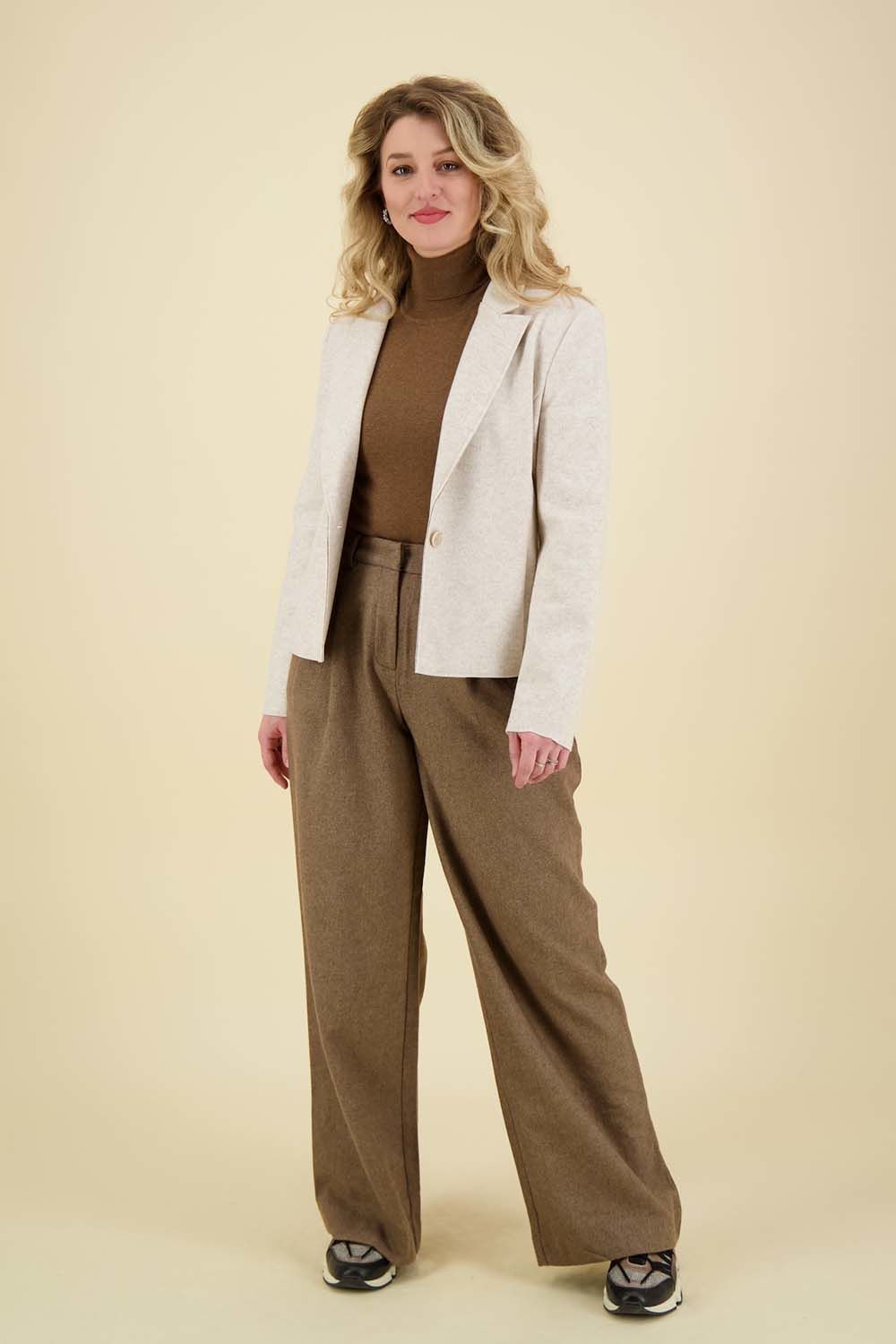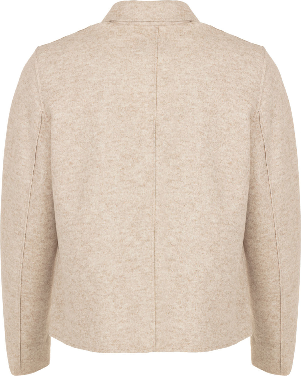De blazer Bae Lynn van B Three is een stijlvolle tussenjas met een getailleerde pasvorm. Gemaakt van wol, heeft het een reverskraag, lange mouwen met manchetten en knopen, en zakken op de voorzijde. Perfect voor nette gelegenheden in het najaar.