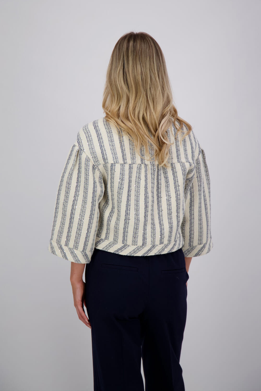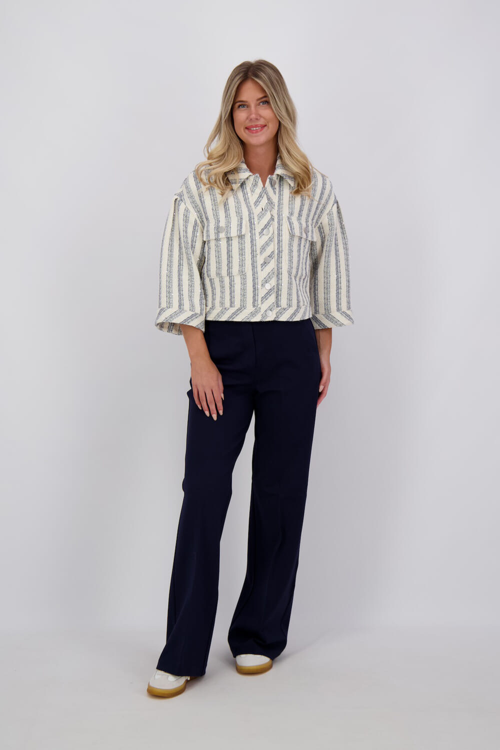 De Blazer Benthe van Beaumont combineert casual minimalisme met een stijlvol streeppatroon. Deze boxy fit tussenjas heeft lange mouwen, een knoopsluiting en handige zakken aan de voorzijde. Ideaal voor een ontspannen en modieuze uitstraling in diverse gelegenheden.