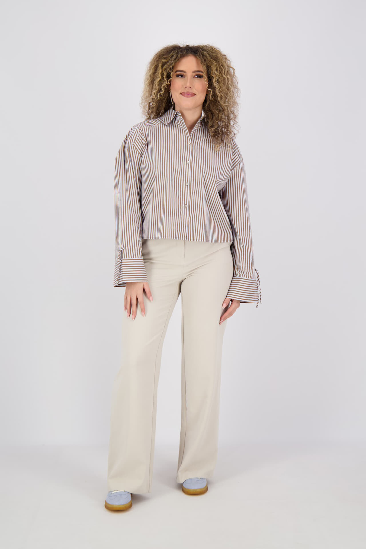 De Blouse Bel van Beaumont is een stijlvolle dames blouse met een casual uitstraling. Uitgerust met een spreidkraag, lange mouwen en een cropped fit, biedt deze blouse zakken op de voorzijde en manchetten met knopen. Het gestreepte patroon maakt het compleet.