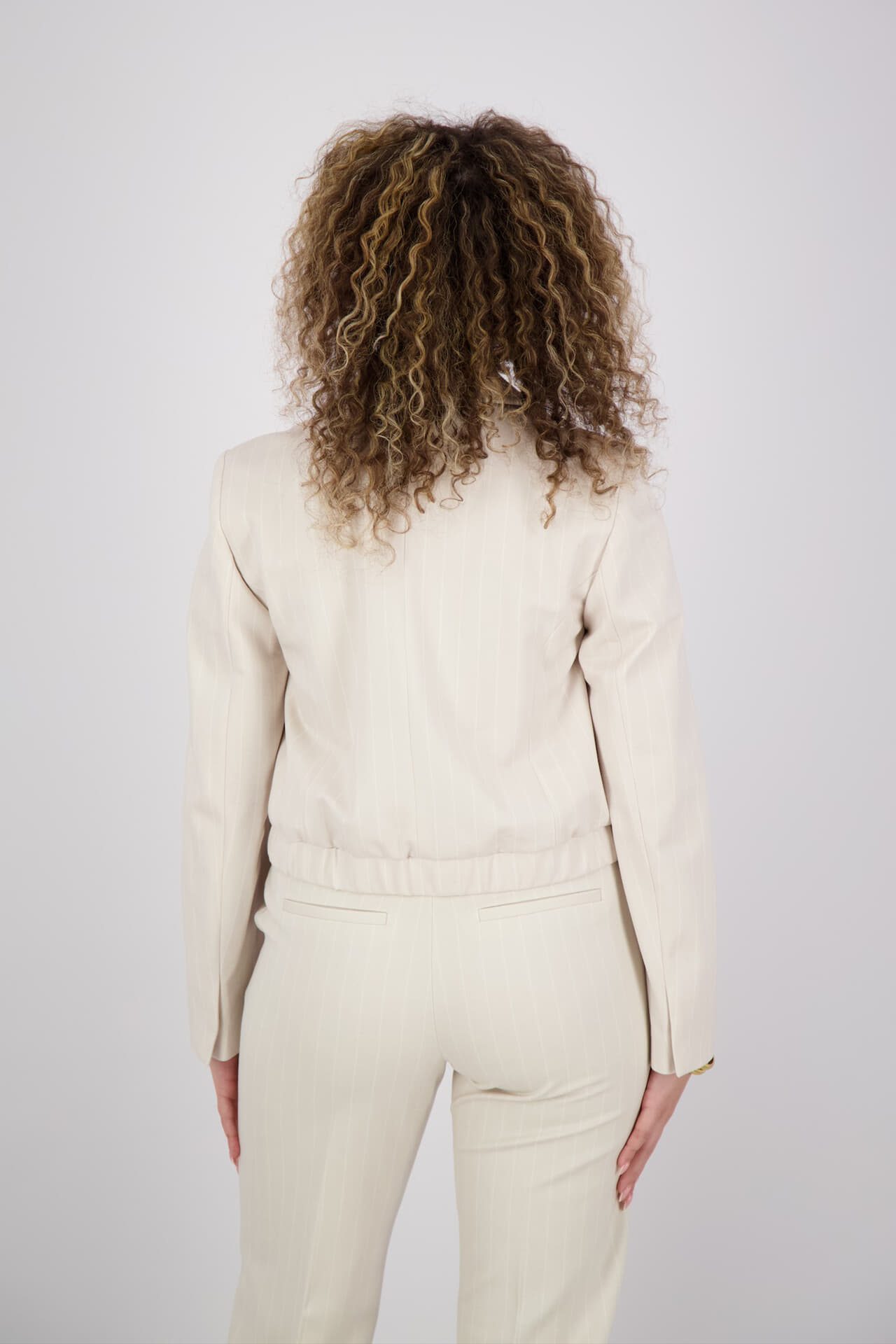 De Bomberjasje Dagmar van Beaumont is een stijlvolle blazer met een spreidkraag en knopen, ontworpen in een effen patroon. De cropped fit en lange mouwen zorgen voor een eigentijdse uitstraling, perfect voor formele gelegenheden. Een must-have voor een verfijnde garderobe.