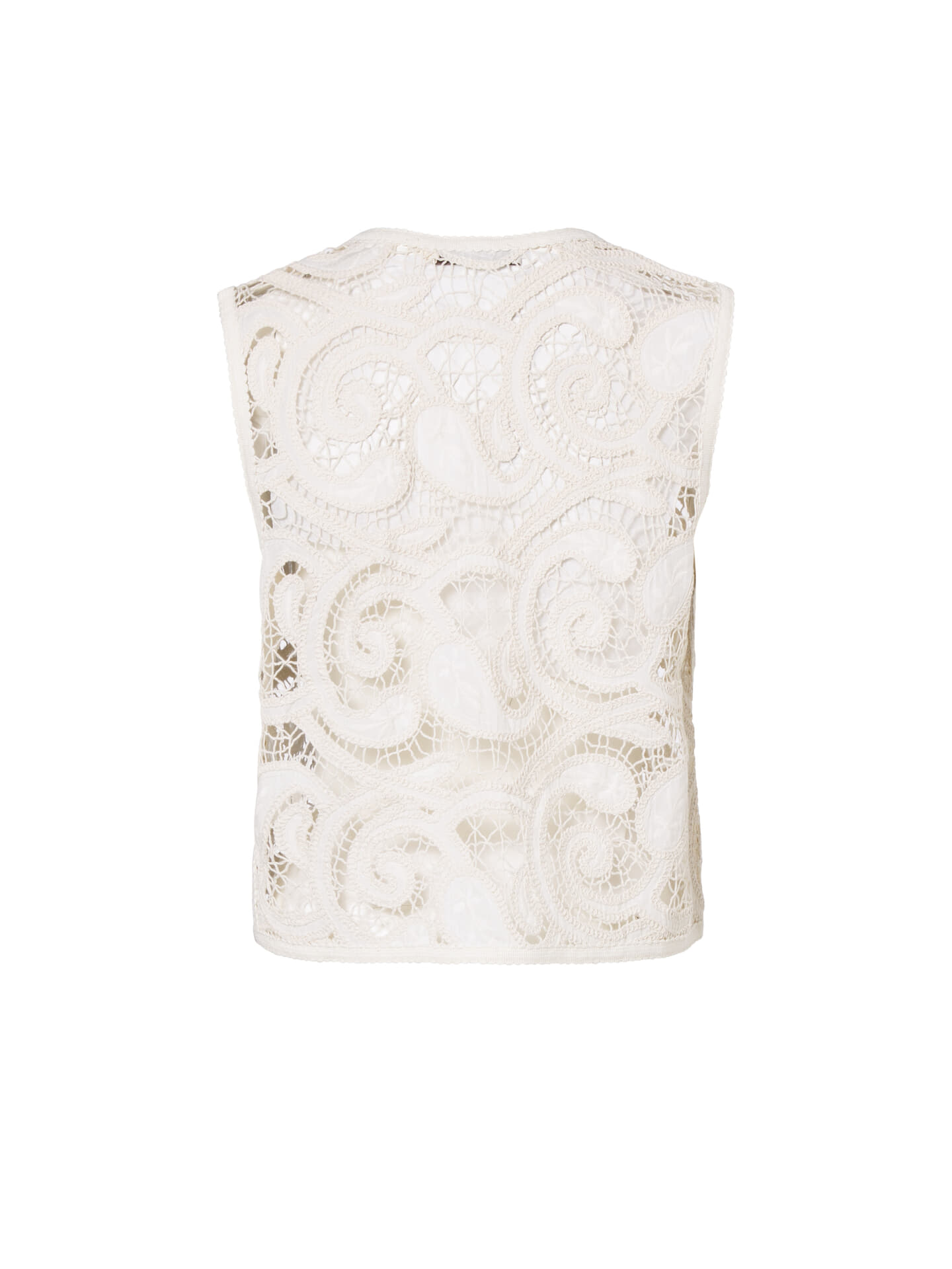 Gilet Julie van Beaumont is een stijlvol dames gilet met knoopsluiting en een elegante V-hals. Het opvallende gaatjespatroon zorgt voor een unieke uitstraling, en het mouwloze ontwerp maakt het veelzijdig voor verschillende gelegenheden. Ideaal voor wie houdt van vrouwelijke en modieuze kleding.
