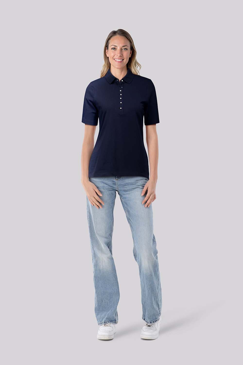 Polo Pique van Bloomings is een polo met effen kleur, korte mouwen en regular pasvorm. De polokraag met spreidkraag loopt door in een knoopsluiting met parelmoerachtige knopen. De piquéstructuur geeft een sportieve, casual uitstraling. Combineer met een lichte broek of denim.