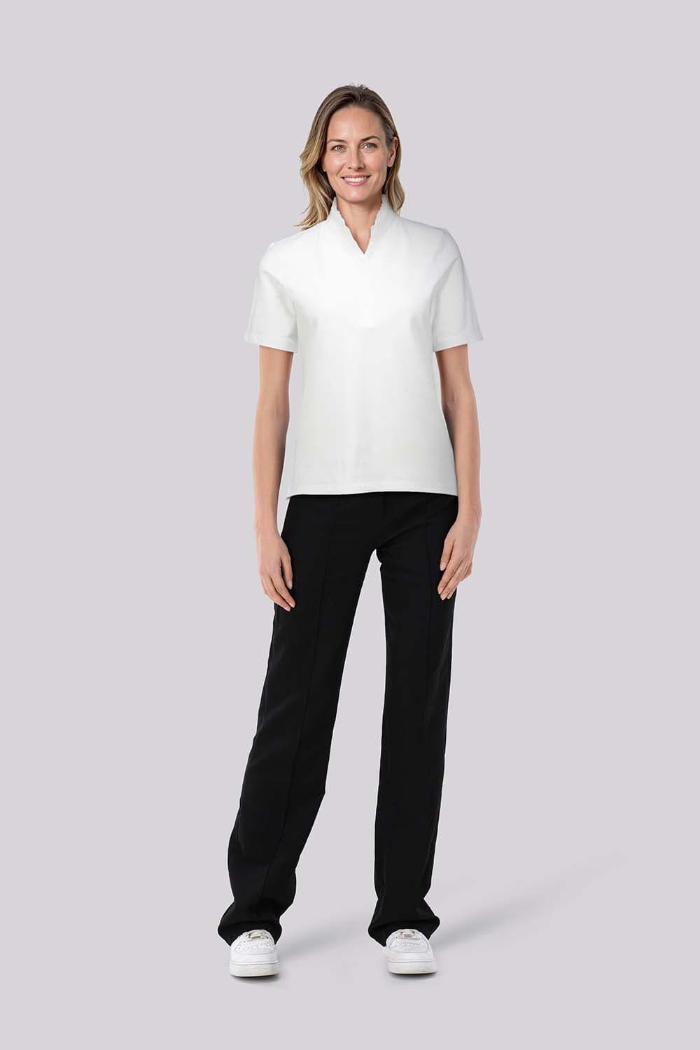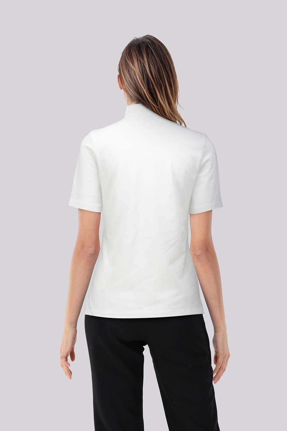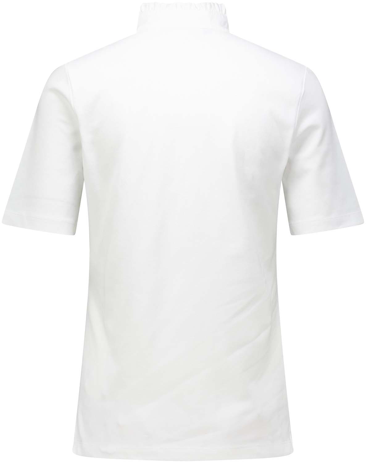Polo Pique van Bloomings is een polo met korte mouw en een getailleerde pasvorm. De effen piquéstof en de knoopsluiting geven een zakelijke uitstraling. De mandarinkraag met subtiele rucherand en opstaande kraag zorgen voor een nette afwerking. Draag met een pantalon of rok.