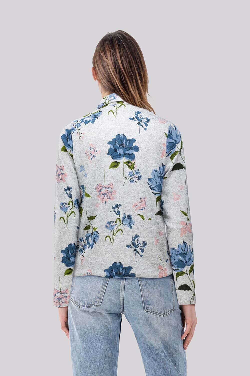 De Bloomings top, een dames top lange mouw, combineert een spreidkraag met een V-hals en koordsluiting. Het bloemenpatroon op de grijze stof voegt een vleugje elegantie toe, terwijl de lange mouwen en regular fit zorgen voor comfort en stijl voor elke casual gelegenheid.