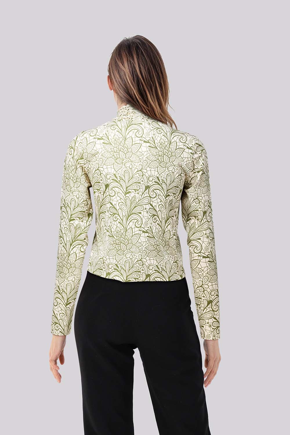 De Top Paisley van Bloomings is een verfijnde dames top lange mouw met een elegante bloemenprint. Deze getailleerde top heeft een halve col en lange mouwen, ideaal voor nette gelegenheden. De stijlvolle look maakt het een veelzijdige aanvulling op elke garderobe.