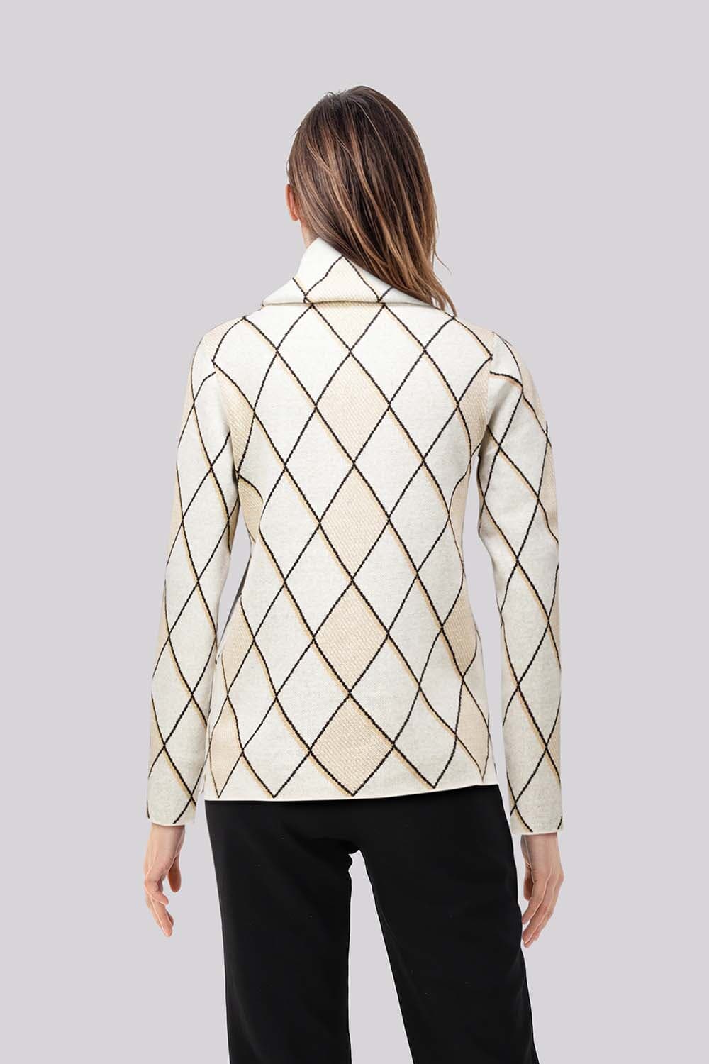 De trui van Bloomings in de categorie coltruien heeft een casual stijl met een col en een regular pasvorm. De lange mouwen hebben een ribgebreid boord en het ruitpatroon geeft een stijlvolle uitstraling, perfect voor informele gelegenheden.