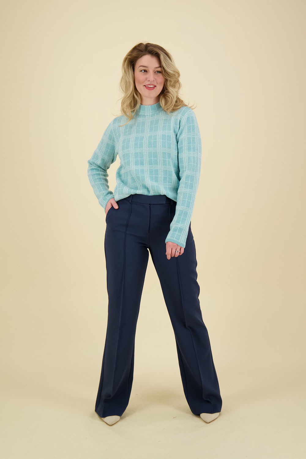 De trui van Bloomings, perfect voor casual dagen, combineert een minimalistisch design met een mockneck halslijn en een regular fit. De lange mouwen en het stijlvolle ruitpatroon maken het een veelzijdige keuze.