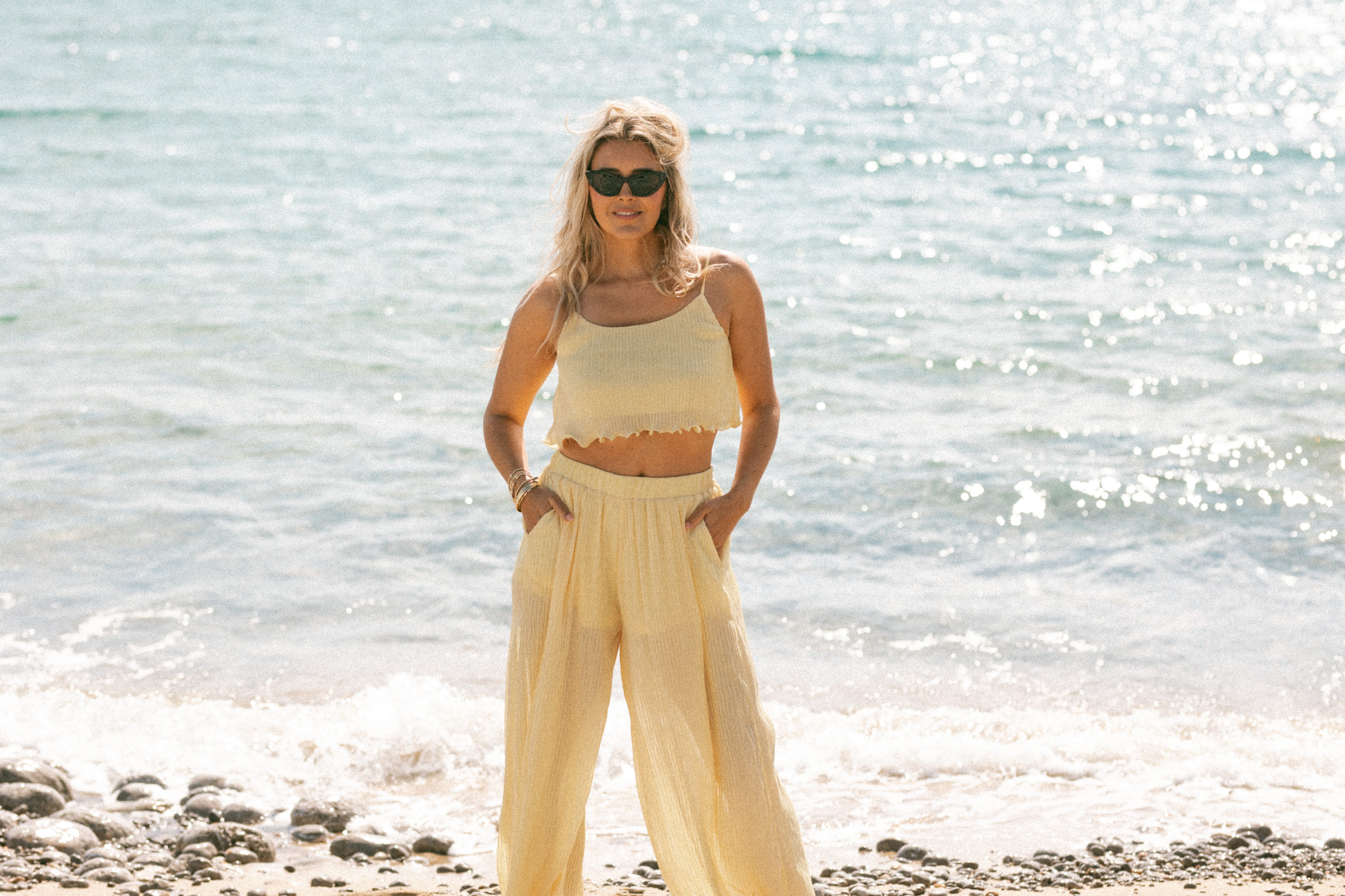 Met de Yasmin Set ben je in één keer klaar voor de dag. De top heeft verstelbare bandjes en een elastische binnentop die goed blijft zitten. De balloon broek draag je mooi hoog in de taille en heeft een handig binnenbroekje. Comfortabel én trendy. Perfect voor een zonnige dag.