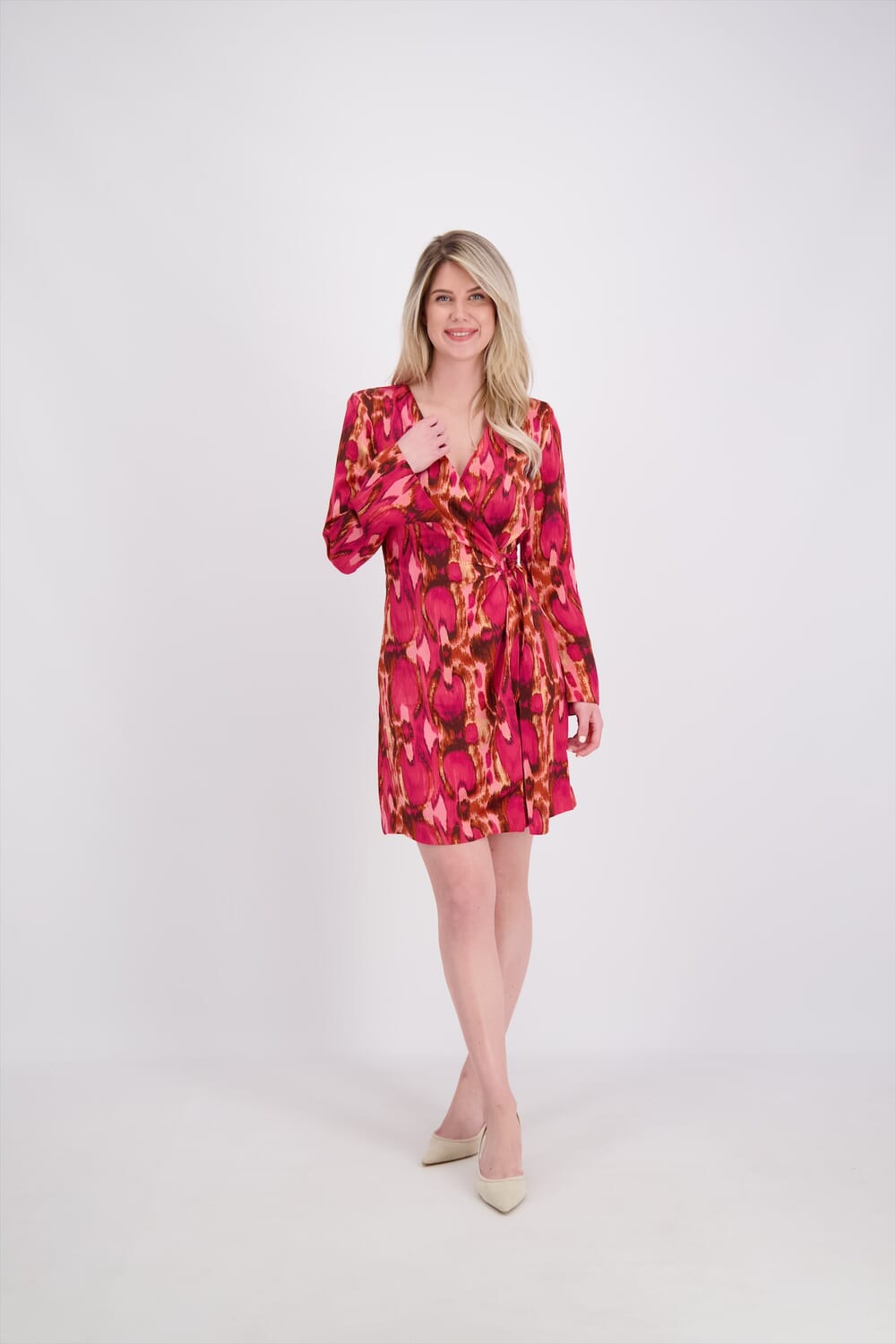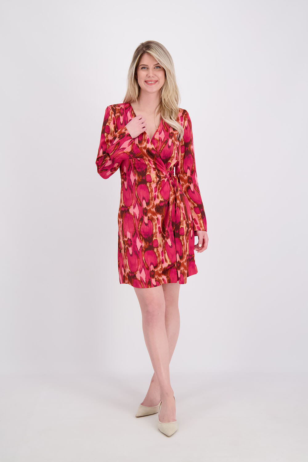 De Jurk Bolisious Dream van Bolina Island straalt met een levendig all-over patroon. Met een flatterende V-hals, striksluiting en lange mouwen is deze jurk perfect voor elke gelegenheid. De mini-lengte voegt een speels element toe aan deze stijlvolle damesjurk.