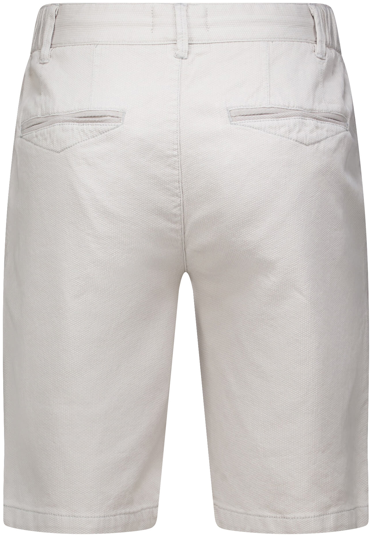 Chino Short Ferdinand van Bomont zit comfortabel door de elastische, normale taille met trekkoord. De effen stof heeft een subtiele structuur en een nette knoopsluiting. Voor- en achterzakken bieden ruimte voor essentials. Draag casual met een T-shirt of zakelijk met een overhemd en sneakers.