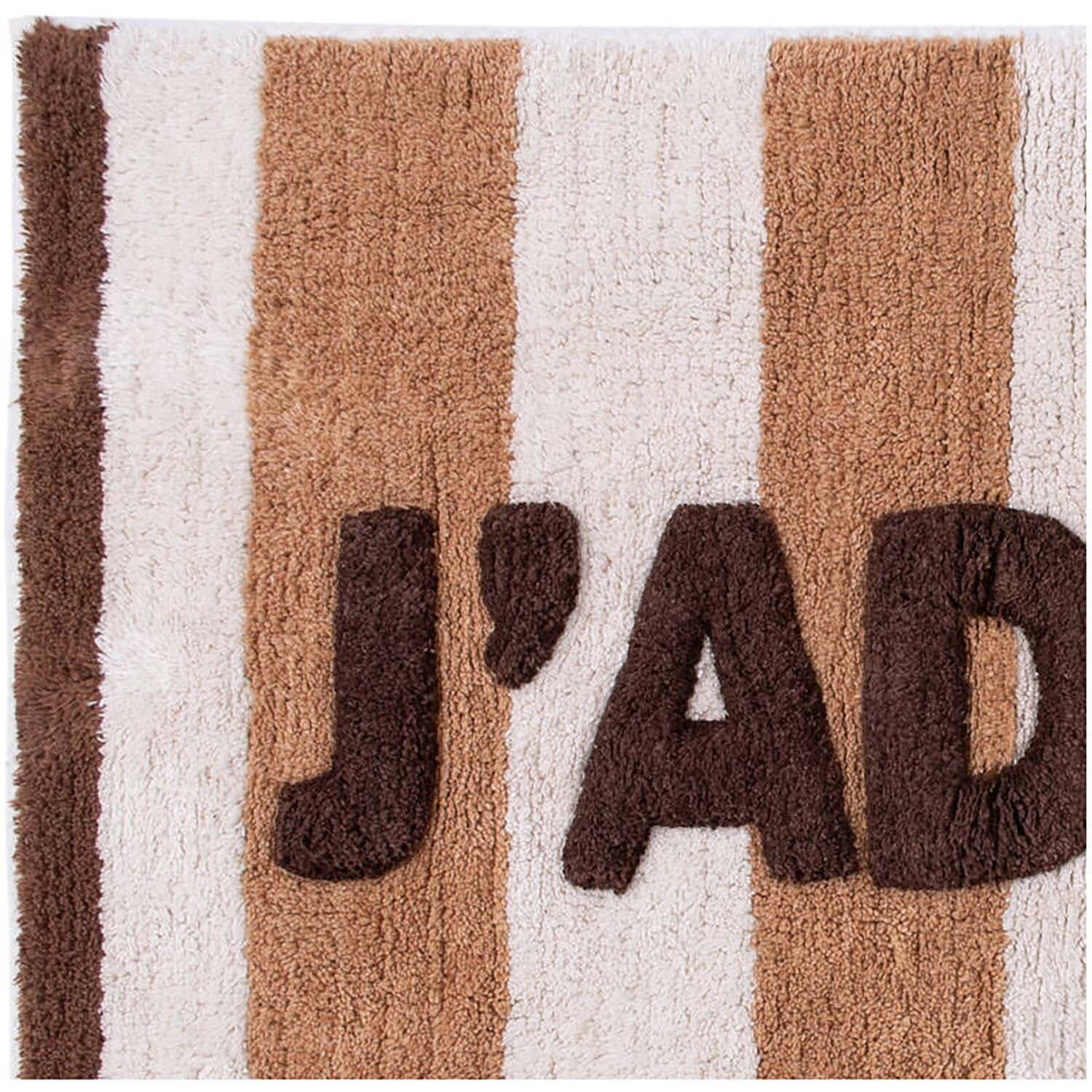 Badmat J'Adore 50x80cm van Bomont Collection KT geeft de badkamer een casual accent. Het streeppatroon zorgt voor een rustige basis, terwijl het logo J'Adore duidelijk opvalt. Het royale formaat voelt prettig aan onder de voeten en ligt stabiel. Combineer met effen handdoeken.