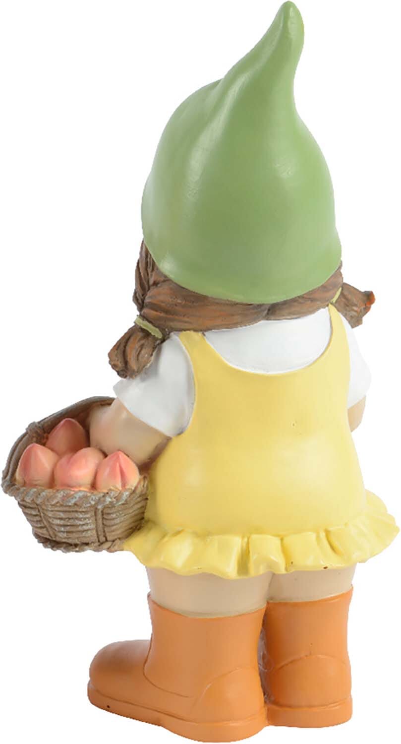 De Gnoom perzik L11.5 W11 H23 cm uit de Bomont Collection is perfect voor de tuin. Let op: Oranje = man, Groen = vrouw. Met een casual stijl en effen patroon, brengt deze vrolijke gnoom een warme uitstraling. De gnoom houdt een mand met perziken vast en draagt een speelse hoed.