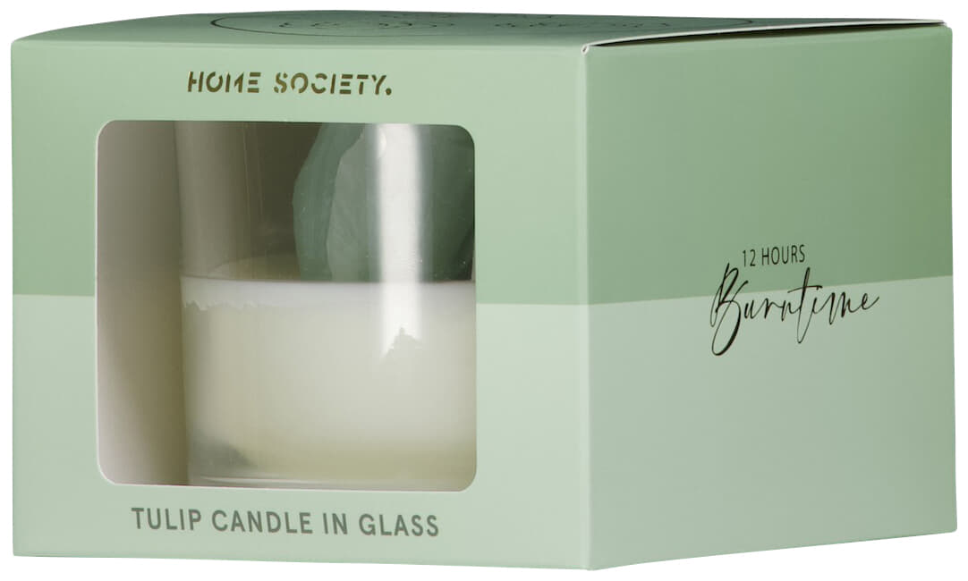 Breng een zachte, vrouwelijke sfeer in huis met deze tulpenkaars in glas. De elegante tulpenvorm geeft een verfijnde touch, terwijl het heldere glas mooi staat op tafel, nachtkastje of in de badkamer. Perfect voor een casual, gezellige avond: even aansteken, ontspannen en genieten van warm kaarslicht. Een modern en stijlvol detail dat je interieur net wat specialer maakt.