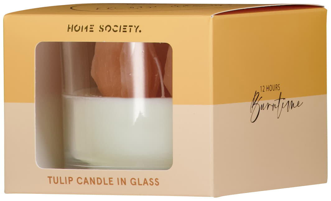 Breng een zachte, vrouwelijke sfeer in huis met deze tulpenkaars in glas. De elegante tulpenvorm geeft een verfijnde touch, terwijl het heldere glas mooi staat op tafel, nachtkastje of in de badkamer. Perfect voor een casual, gezellige avond: even aansteken, ontspannen en genieten van warm kaarslicht. Een modern en stijlvol detail dat je interieur net wat specialer maakt.