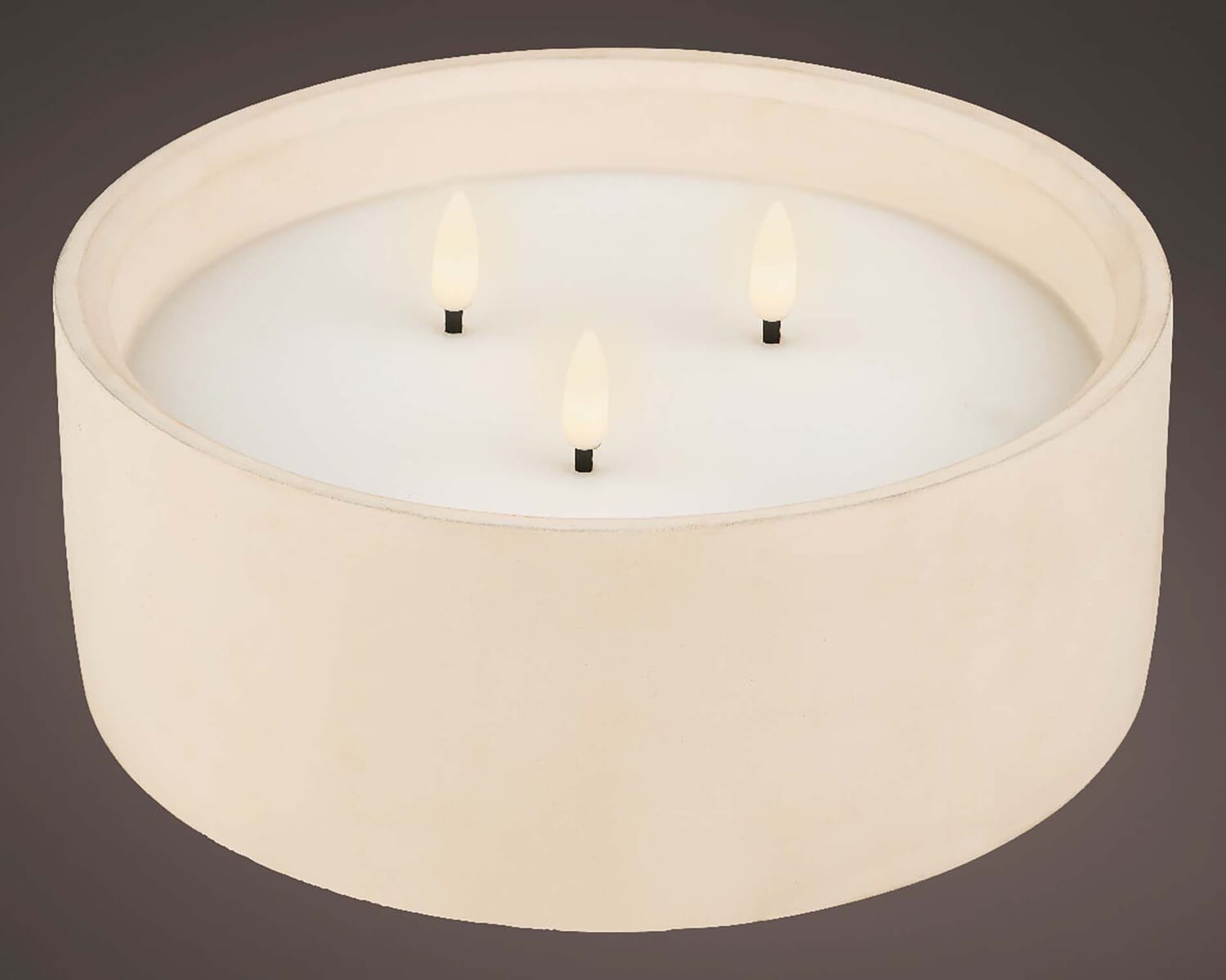 De LED kaars beton steady buiten dia20cm H.8cm creme van Bomont Collection is een stijlvolle toevoeging aan de tuin. Met een minimalistisch design en effen patroon biedt deze kaars een warme en gezellige sfeer voor elke buitenruimte, perfect voor ontspannen avonden in de tuin.