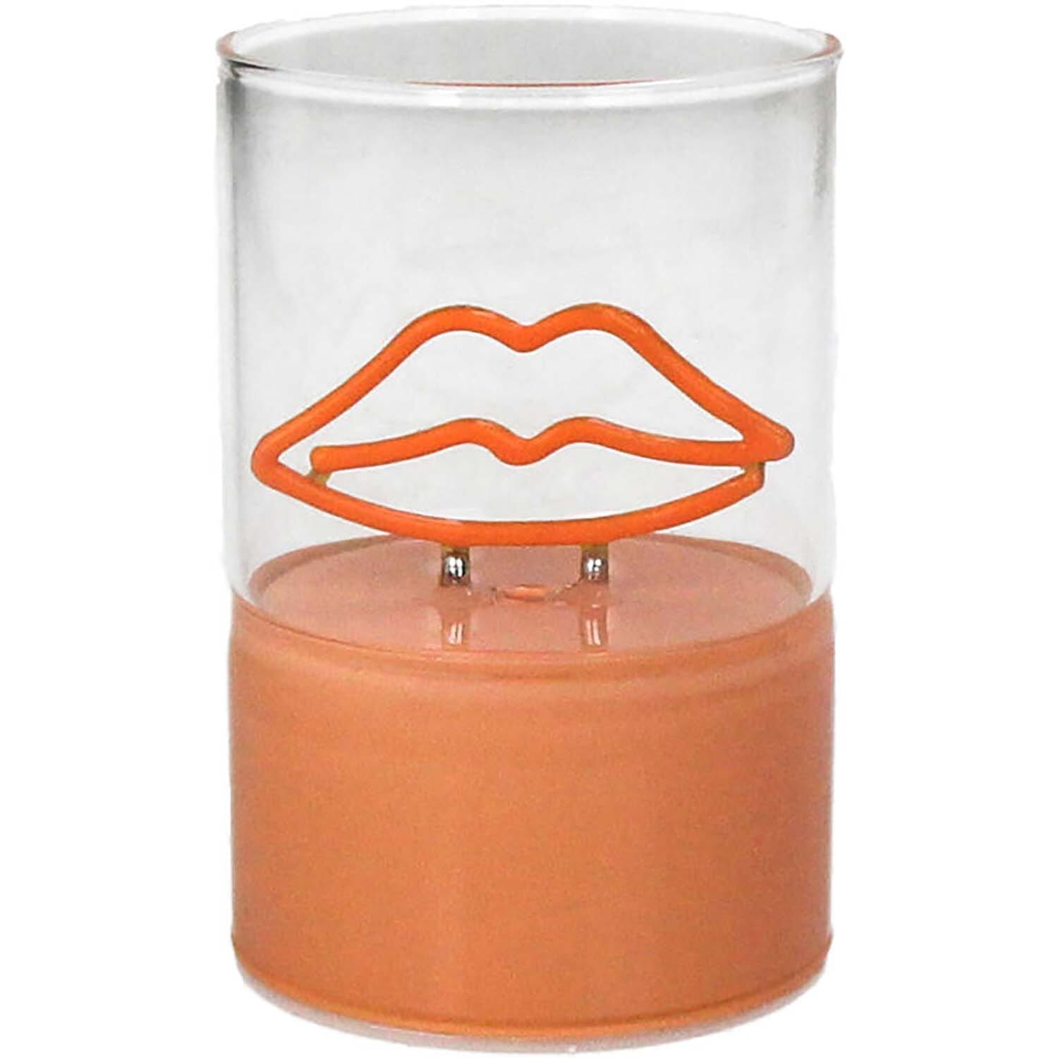 De Ornament Lips LED Glass Orange 6.5x6.5x10cm van Bomont Collection combineert een grafisch patroon met een verfijnde stijl. Dit interieuraccessoire, een kaars, voegt een warme en stijlvolle sfeer toe aan elke ruimte.