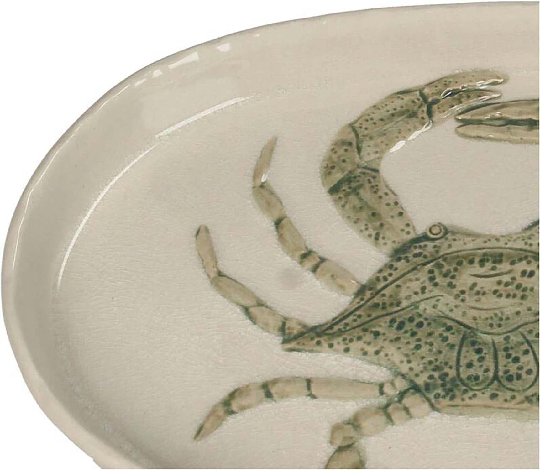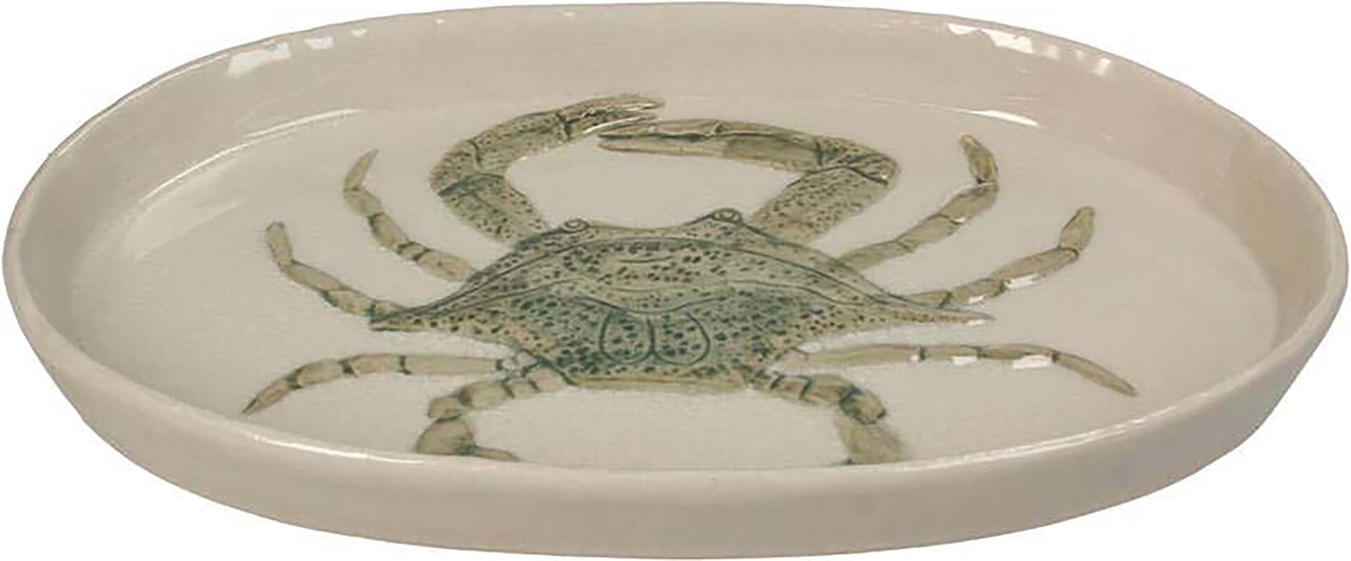 Plate Crab 28.8x18x2.5 Cm van Bomont Collection KT is servies maritiem met dierenprint. De ovale schaal heeft een opstaande rand en een reliëf krabmotief met fijne details. Handig voor hapjes, gebak of sieraden. Combineer met andere nautische items voor een rustige tafel.
