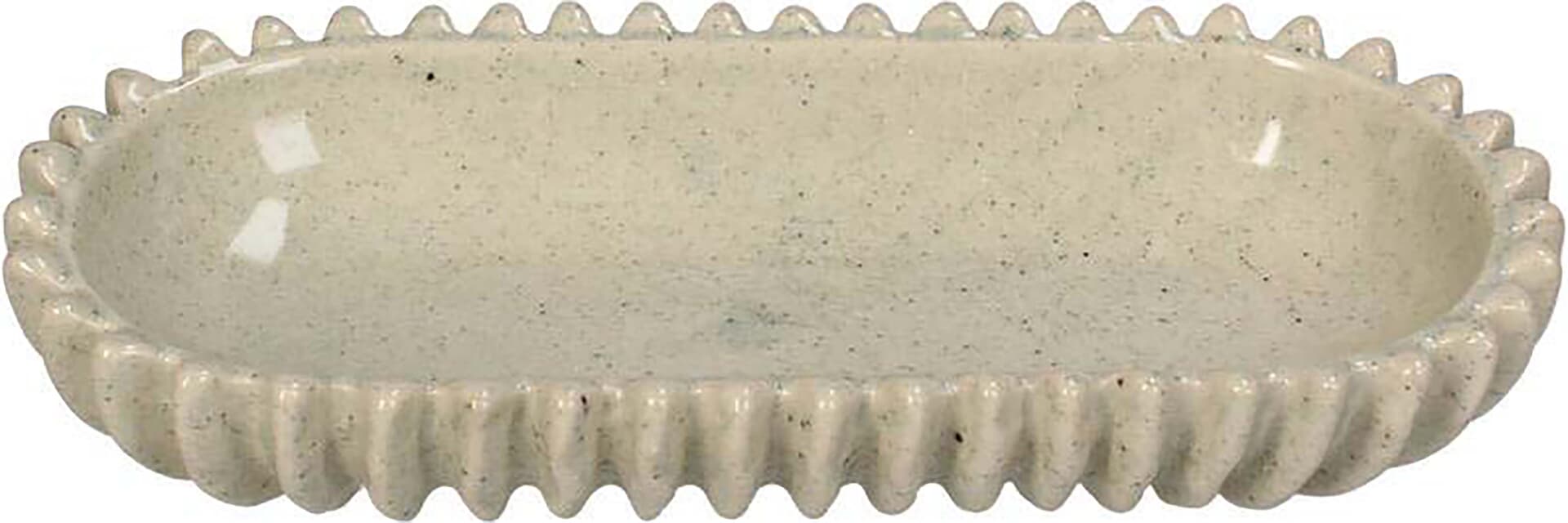 Schaal 26.5x12.5x4.5 cm van Bomont Collection KT is servies/aardewerk met een effen, minimalistische uitstraling. De ovale vorm, opstaande rand en gegolfde afwerking geven houvast bij serveren. Praktisch voor hapjes, bijgerechten of snacks. Combineer met strak tafeltextiel voor een rustige setting.