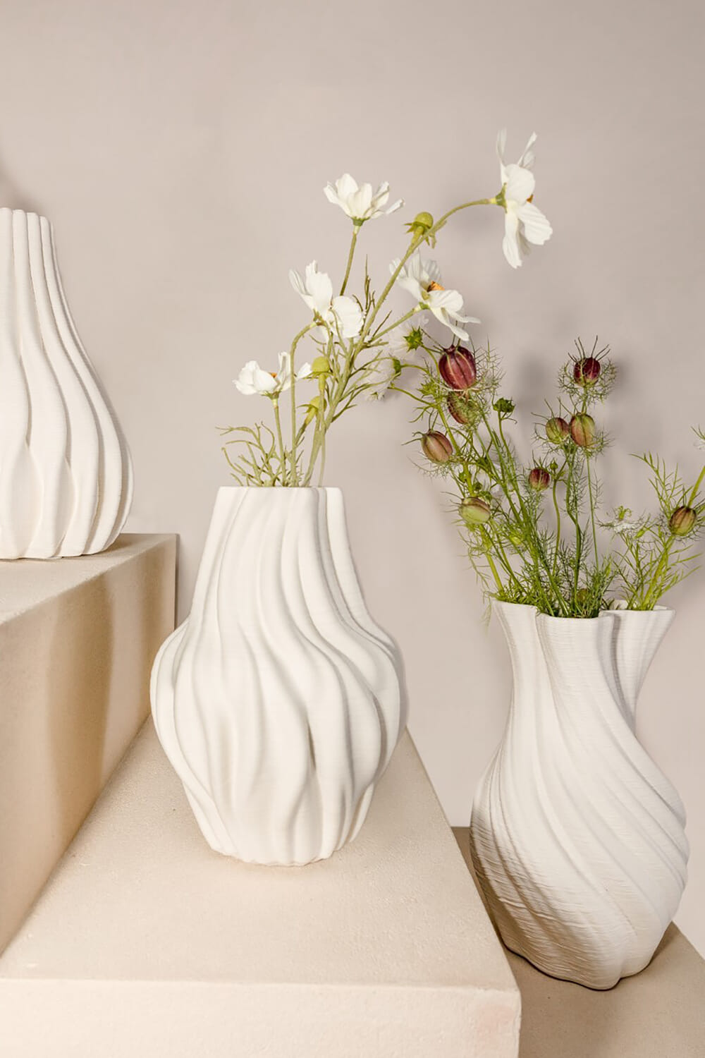 De Vaas Atlantis Aqua wit van Bomont Collection is een stijlvolle toevoeging aan elk interieur. Het 3D-geprinte ontwerp, met zijn unieke textuur en moderne vorm, zorgt voor een opvallend accent in de ruimte. Perfect voor bloemen of als decoratief object.
