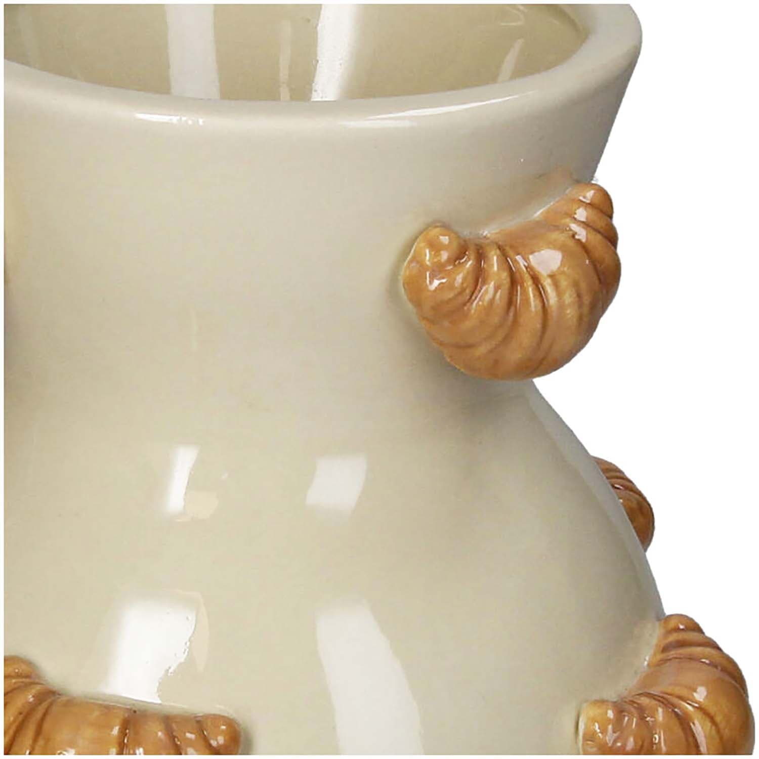 Ontdek een unieke vaas die een vleugje kunstzinnigheid aan je interieur toevoegt. Deze keramische vaas is prachtig versierd met croissantvormige details, waardoor hij een speelse en eigentijdse uitstraling krijgt. Perfect voor bloemen of als opvallend decoratiestuk op zichzelf. Met zijn verfijnde afwerking en subtiele kleurencombinatie past hij moeiteloos in elke moderne woonruimte. Breng een glimlach op je gezicht en een stukje originaliteit in je huis met deze bijzondere vaas.