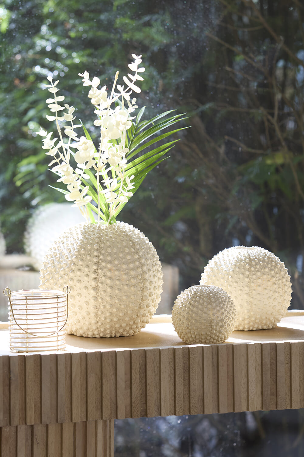 De Vaas Deco SEA URCHIN Ø16X14 Cm Cream van Bomont Collection combineert minimalistische stijl met een uniek zee-egelontwerp. Deze vaas, gemaakt van hoogwaardige materialen, voegt een vleugje natuur en moderniteit toe aan elk interieur, perfect voor een stijlvolle en inspirerende omgeving.