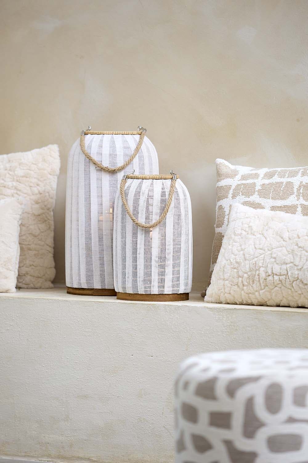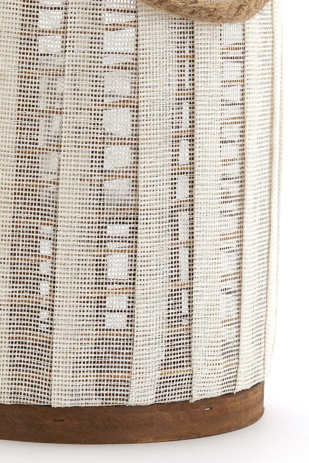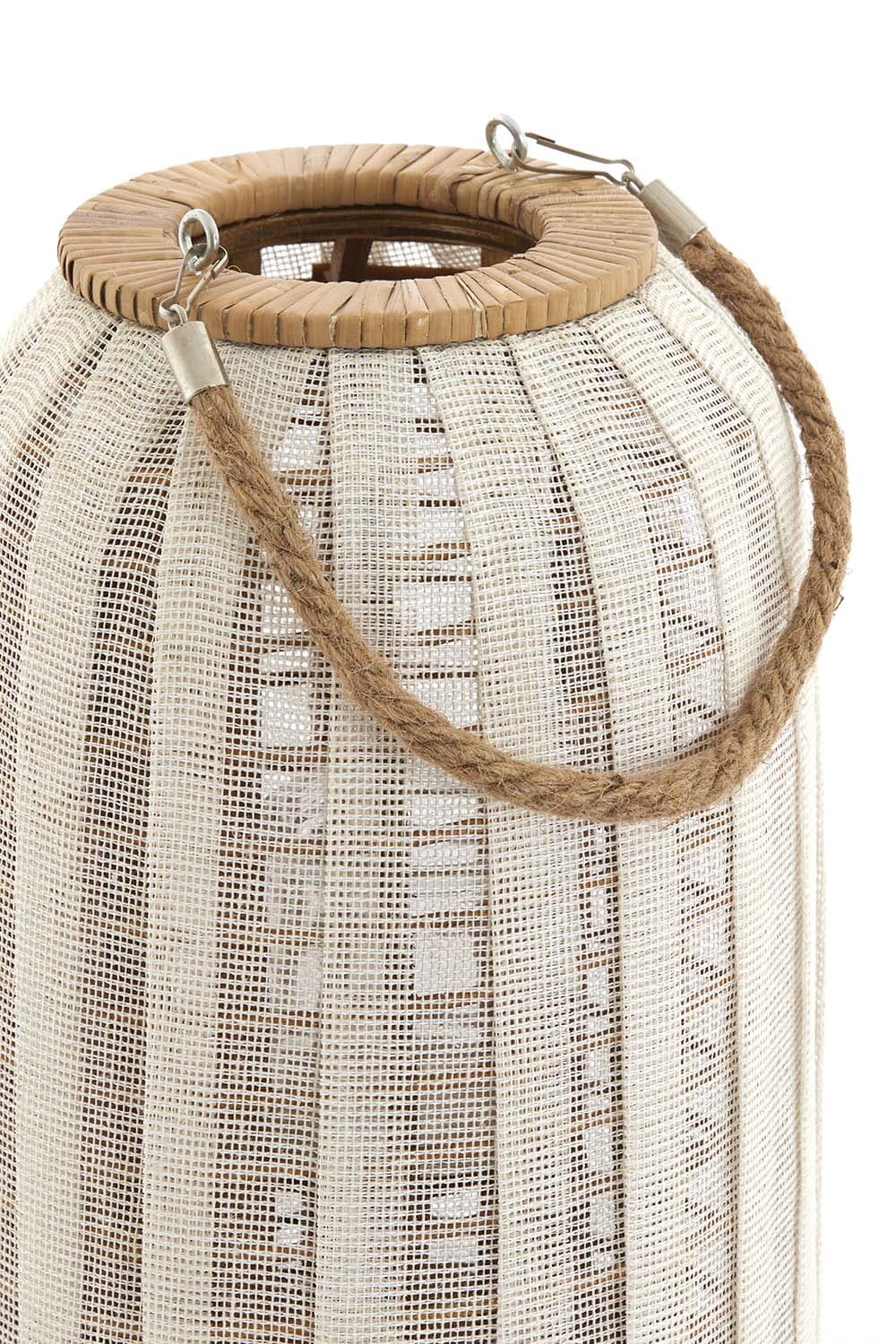 Breng bohemian rust in huis met deze casual lantaarn. Het luchtige, geweven design filtert het kaarslicht zacht en geeft je woonkamer of terras meteen sfeer. De bamboe rand en stevige houten voet zorgen voor een verfijnde, natuurlijke uitstraling. Dankzij het touwhengsel verplaats je hem moeiteloos van tafel naar vensterbank. Perfect voor ontspannen avonden met warm, diffuus licht.
