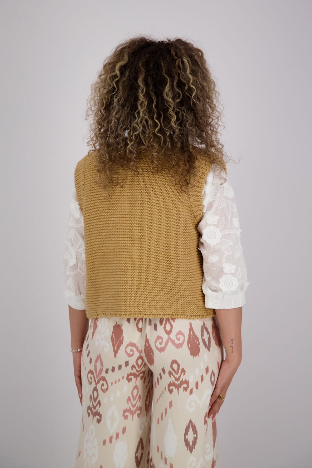 Gilet van Bomont, een veelzijdig en stijlvol dames gilet, is een must-have voor een minimalistische garderobe. Met een gebreide pasvorm en mouwloos ontwerp biedt dit effen vest comfort en elegantie. Ideaal voor elke gelegenheid, en eenvoudig te combineren met diverse outfits.